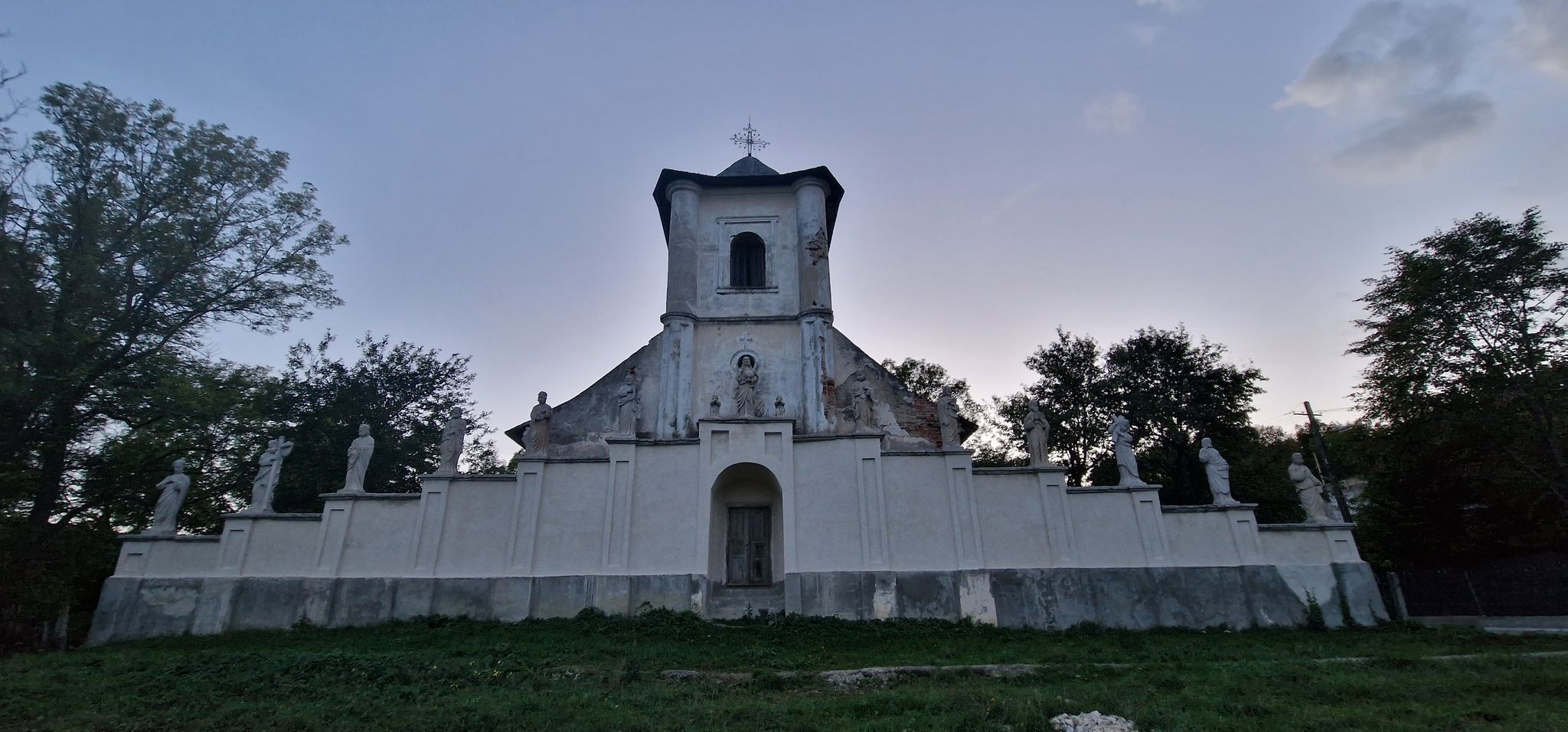 De asemenea, zidul de incintă este decorat cu 13 statuete, reprezentându-i pe cei 12 apostoli şi pe Iisus Hristos, sculptate în stil baroc. Iisus, binecuvântând cu o mână şi ţinând în cealaltă mână globul pământesc, este aşezat deasupra porţii de intrare în clopotniţă, fiind încadrat de siluetele a doi îngeri.
