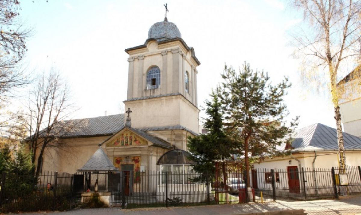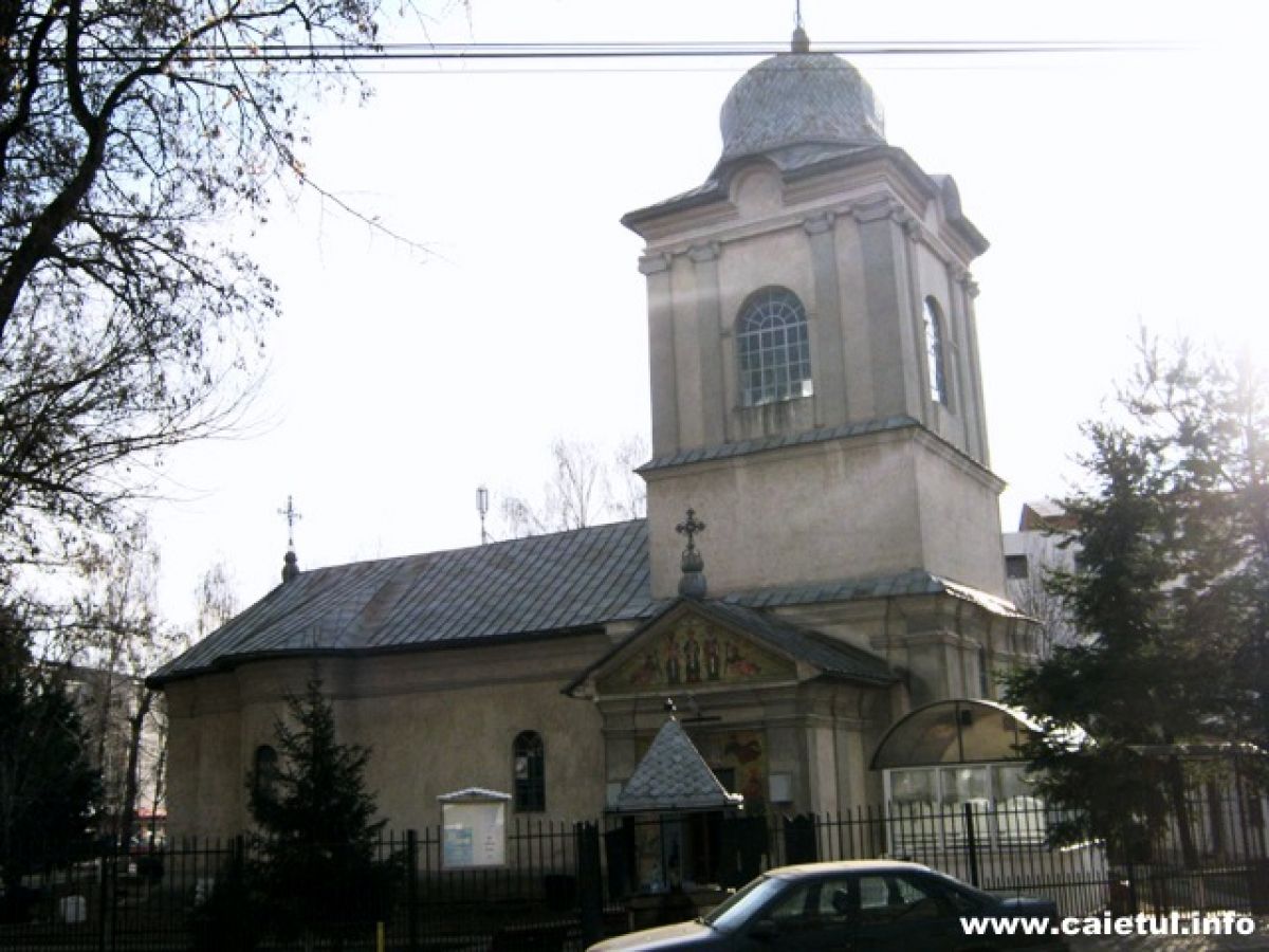 ”Această sfântă biserică din oraș s-a făcut de Constantin Gheorghiu cu puterea lui Dumnezeu și ajutorul creștinilor la anul 1789 mai 8 zile”, stă scris în pisania de deasupra ușii bisericii. În ciuda numelui, ctitorul era un negustor grec. N-a putut oferi credincioșilor și o clopotniță, care a fost zidită abia 44 de ani mai târziu prin osârdia epitropului Hariton Gheorghiu.