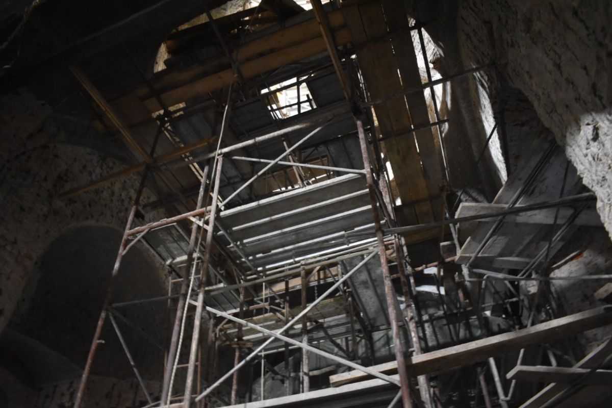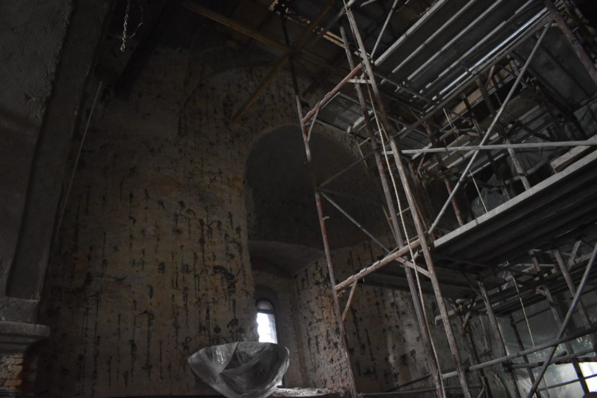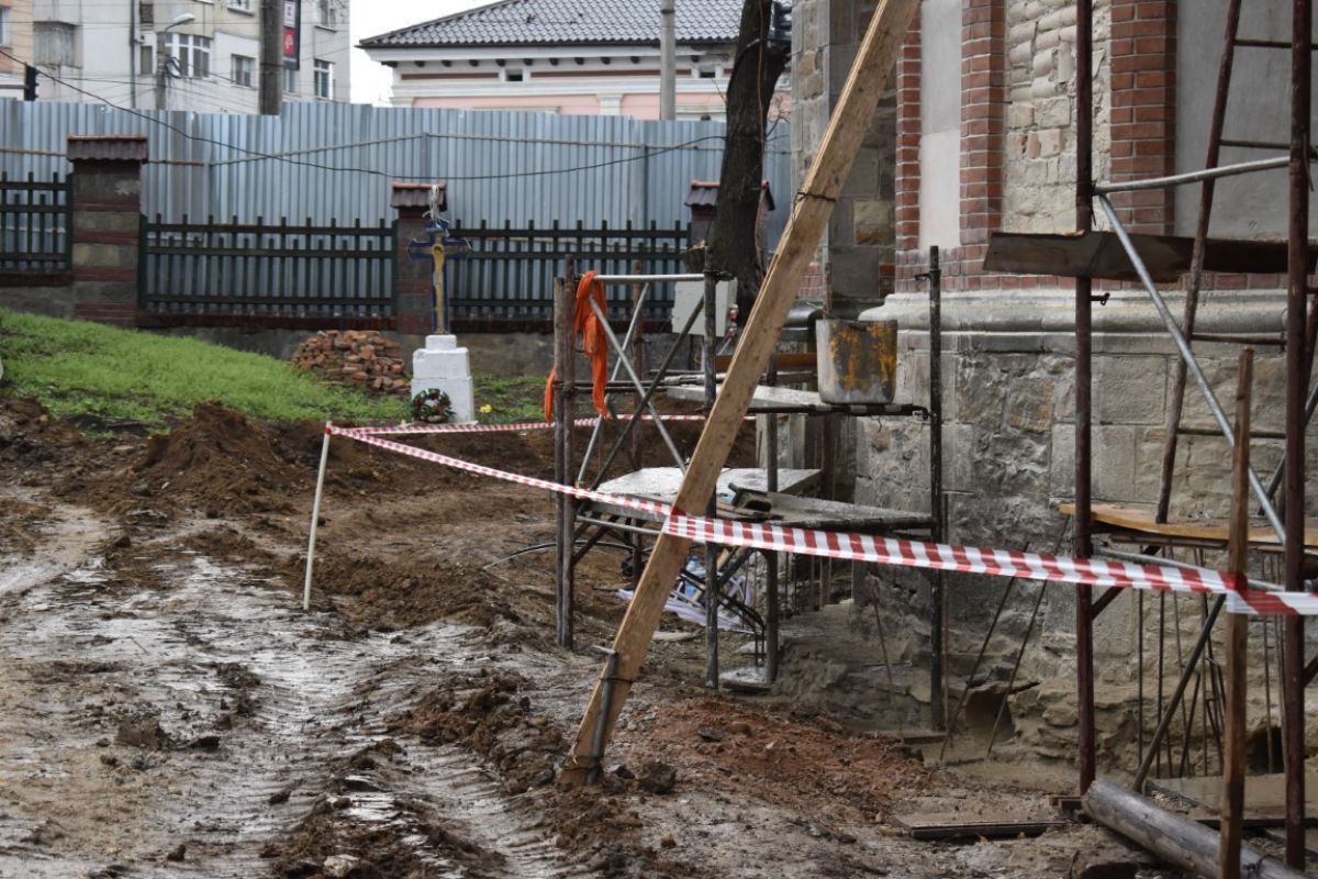 La o primă vedere, părea că timpul s-a oprit în loc, mai ales în interiorul Bisericii care a fost transformat într-un tablou de schele agățate pe pereții cenușii. În exterior, la fel, imagine de șantier și dat fiind timpul ploios, o mare de noroi.