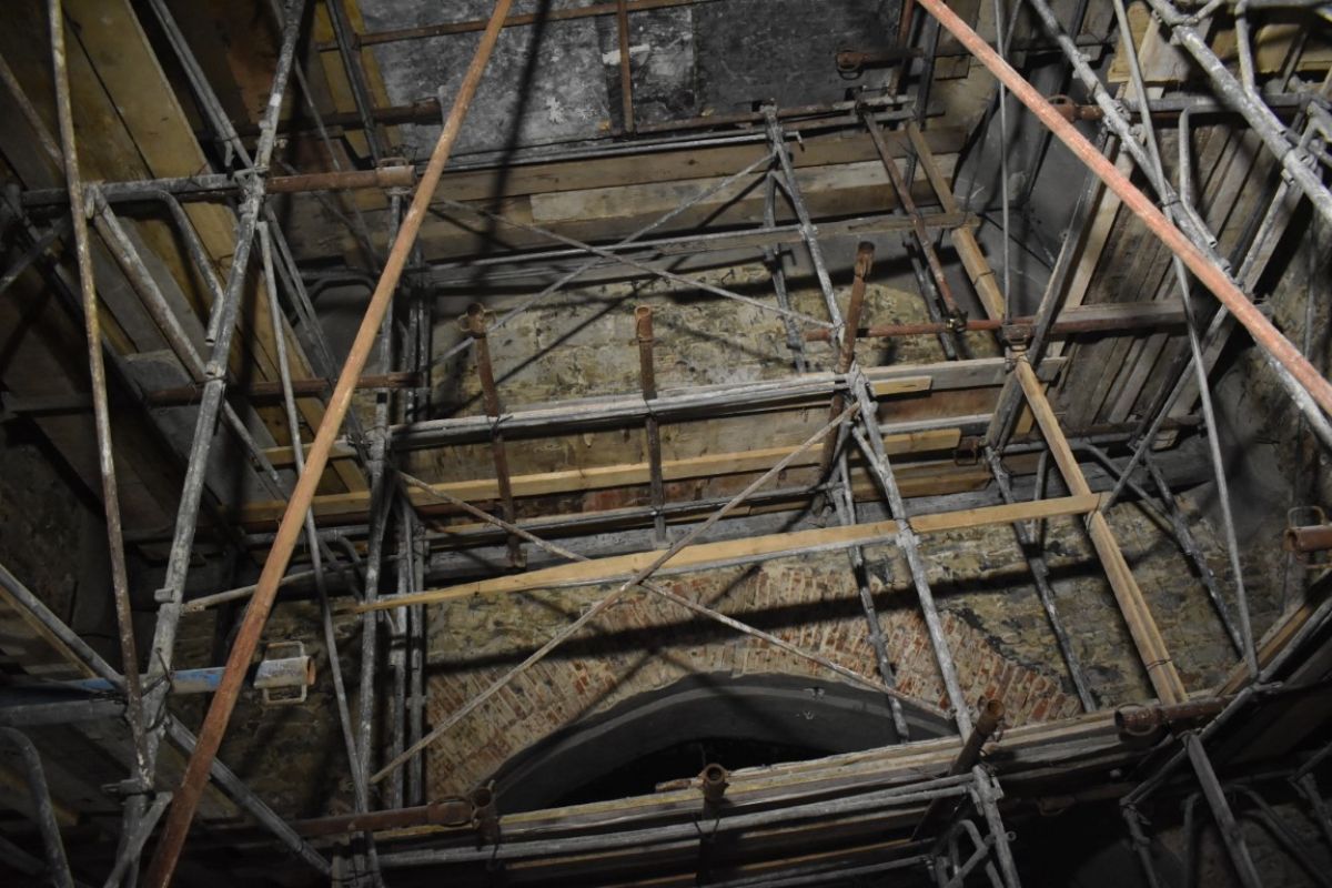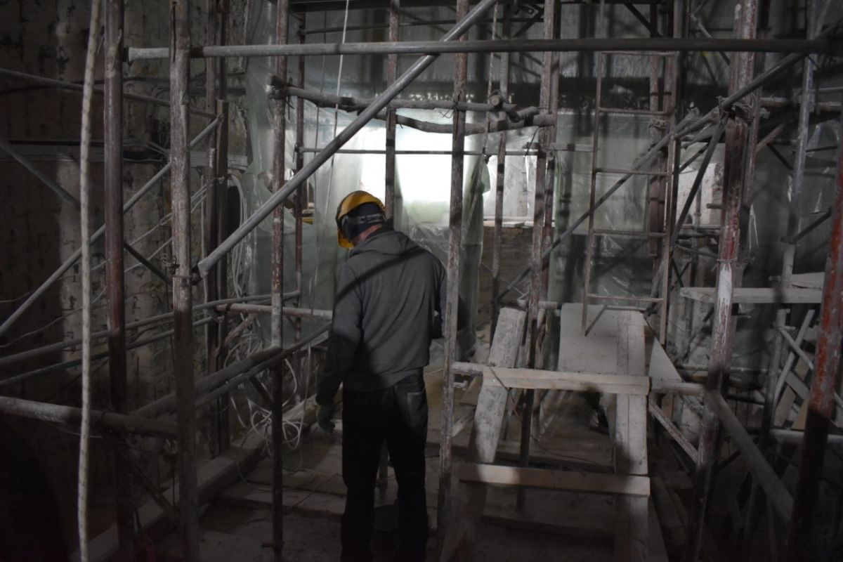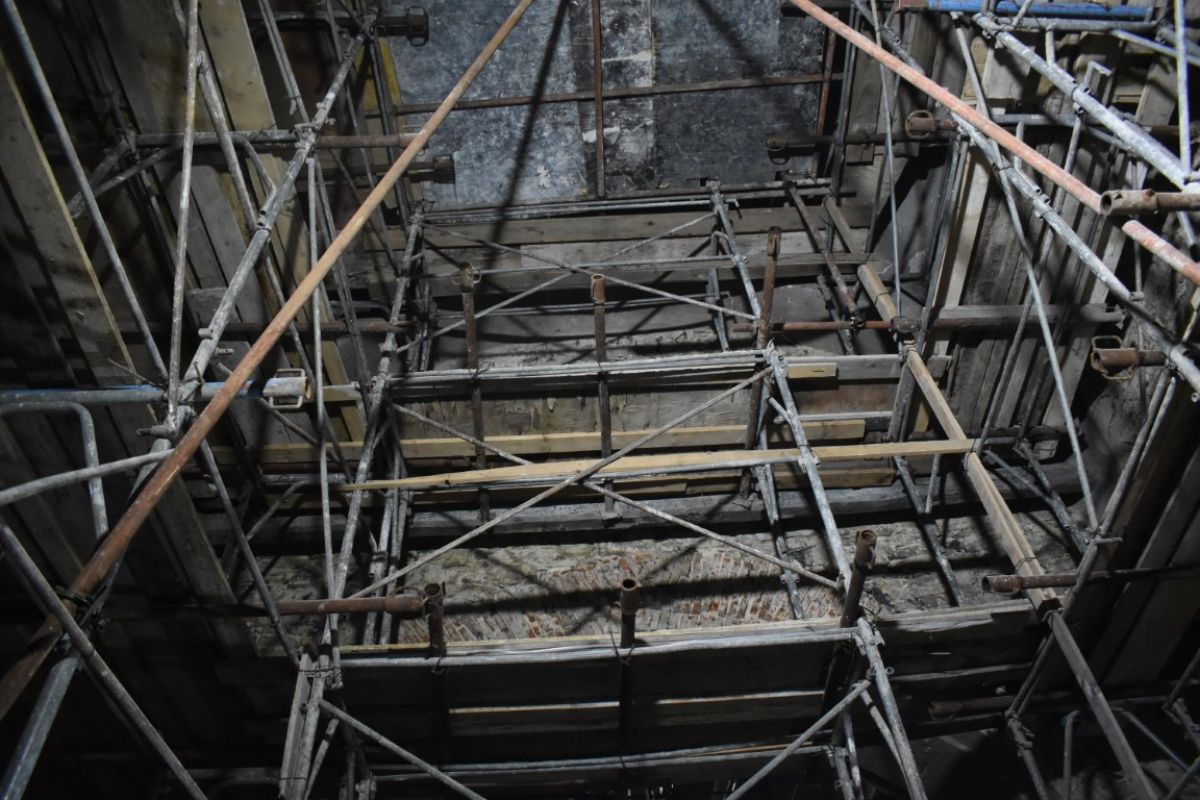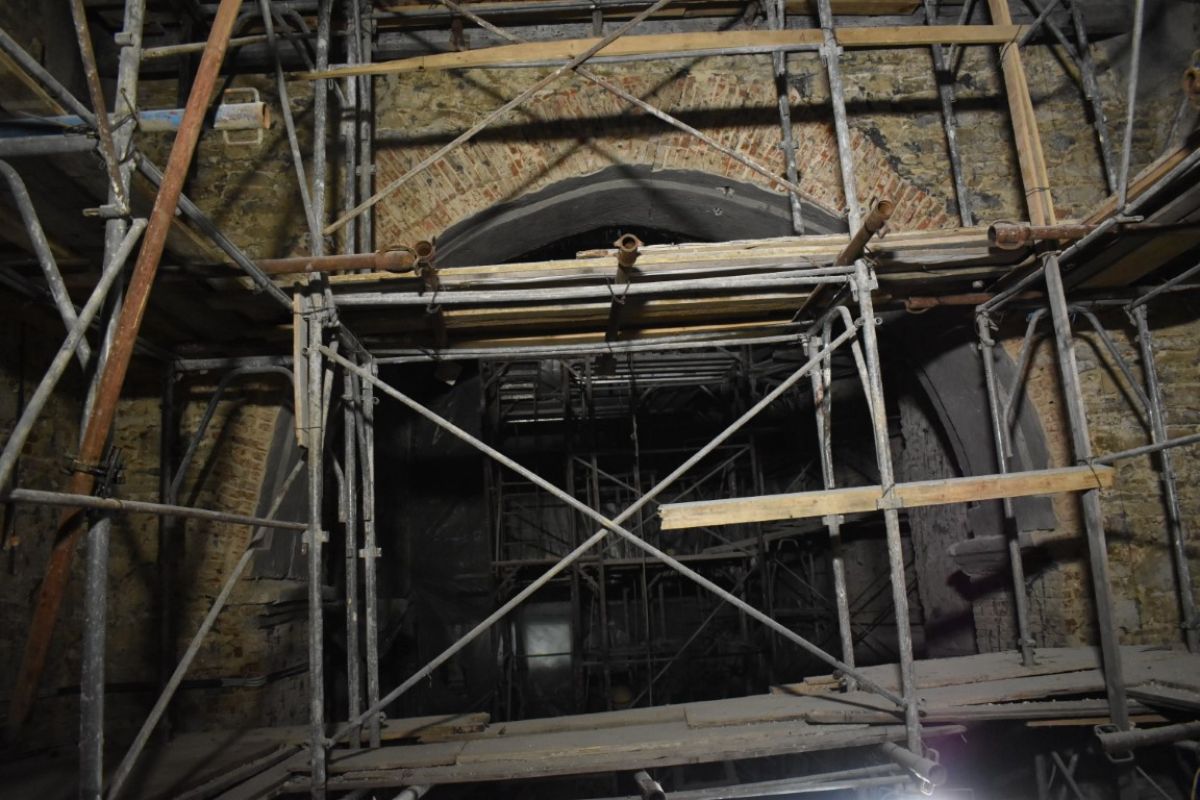 La o primă vedere, părea că timpul s-a oprit în loc, mai ales în interiorul Bisericii care a fost transformat într-un tablou de schele agățate pe pereții cenușii. În exterior, la fel, imagine de șantier și dat fiind timpul ploios, o mare de noroi.