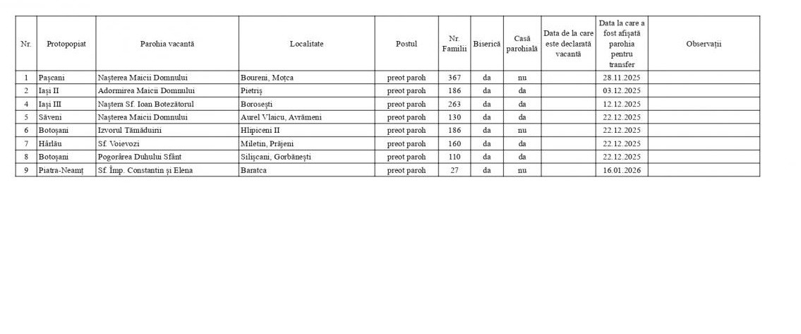 Pot opta pentru transfer doar preoții din cadrul Eparhiei Iașilor care întrunesc condițiile statutare de transfer.