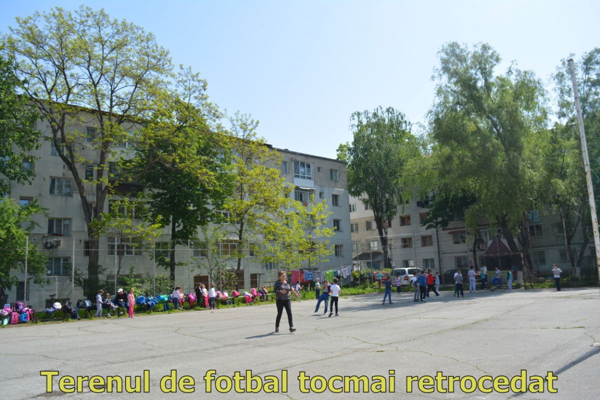 Primăvara aceasta conducerea Şcolii 12 a aflat „pe surse” că trebuie să cedeze şi terenul de fotbal. Motivul? Acelaşi ca şi pentru celălalt spaţiu: a fost retrocedat către fostul proprietar.