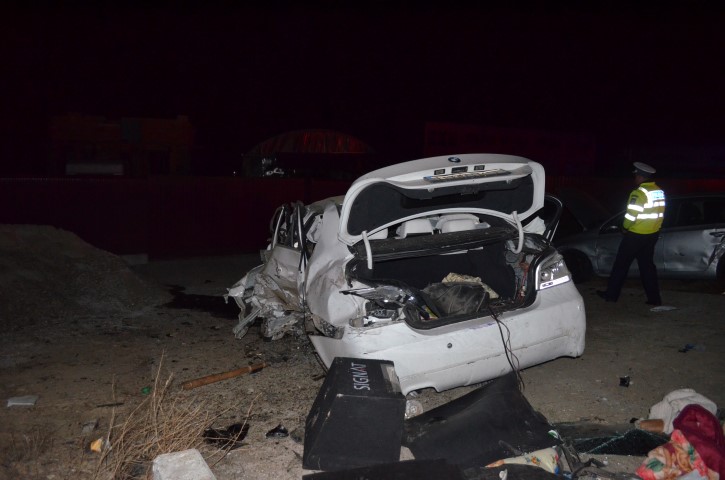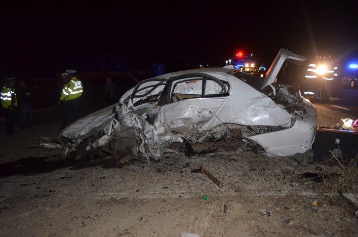 Evenimentul rutier putea fi observat în negura nopții de la sute de metri depărtare. Aproape de locul în care se aflau două dintre mașinile implicate în accidentul grav ce s-a petrecut la ieșirea din Huțani, nu se distingea mai nimic. Tabloul complet era cu mulțime de polițiști și pompieri, mașini cu semnale luminoase aprinse și trei ambulanțe răsfirate pe o distanță de aproximativ 150 de metri.