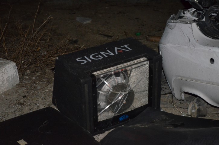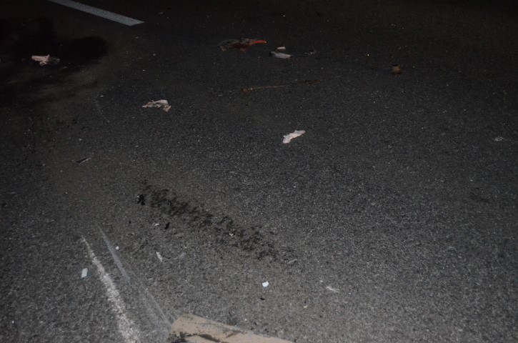 Cele două mașini se aflau la distanță considerabilă față de VW Polo, aruncat pe partea stângă, în decor. Cel mai distrus, aproape în totalitate, era bolidul alb. Pe șosea pe distanța dintre mașinile implicate în accident se aflau bucăți din mașini, de la oglinzi până la roți, bare de protecție sau bucăți de geamuri sparte.