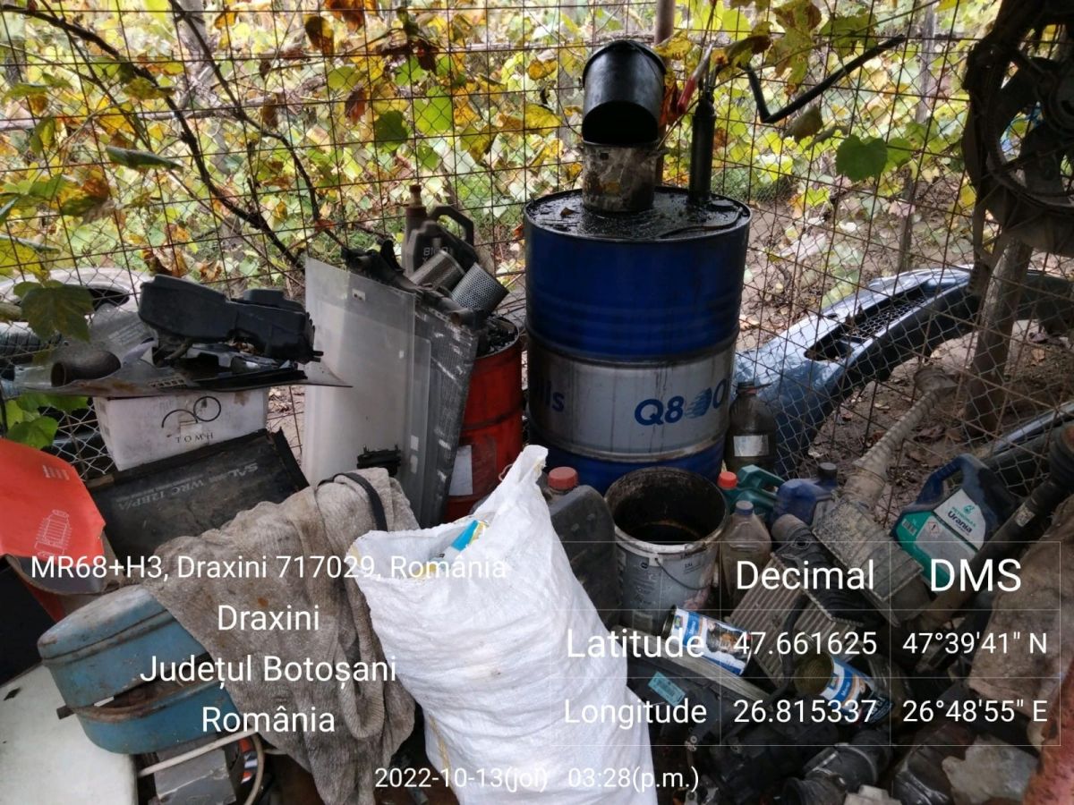 S-a identificat o persoană fizică care desfășura activități de colectare și tratare (dezmembrare) vehicule scoase din uz, fără a deține autorizație de mediu.