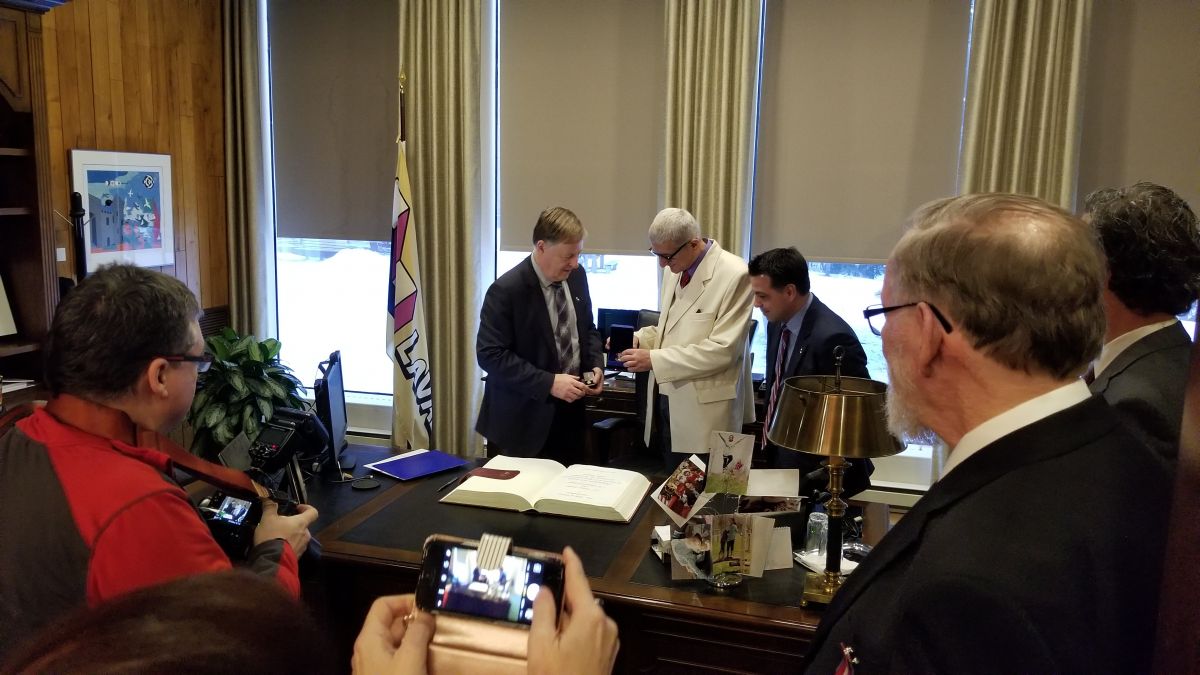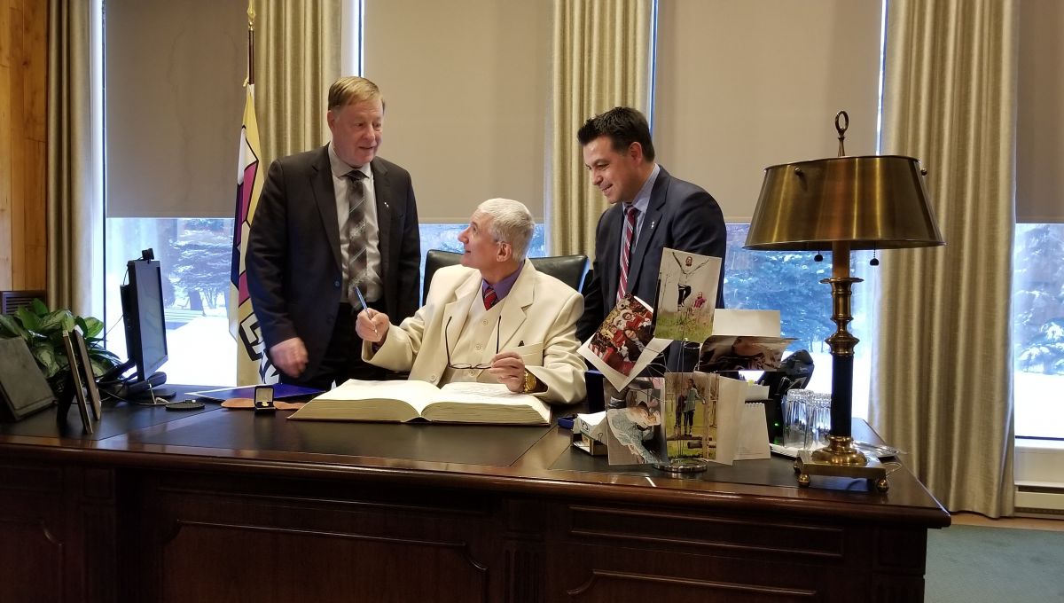 Iata citeva imagini de la ceremonia festiva a semnarii in Cartea de Aur a orasului Laval si a acordarii insignei de Aur a Orasului Laval si a Medaliei de Argint pentru Benevolat a MS Regina Elisabeta a II-a a Angliei si a Canadei , in numele Guvernatorului General al Canadei, de catre primarul orasului Laval Marc Demers si a vice-primarului David de Cotis, simbata 15 decembrie 2017, cu ocazia aniversarii a 10 ani de infratire dintre orasele Laval si Botosani.