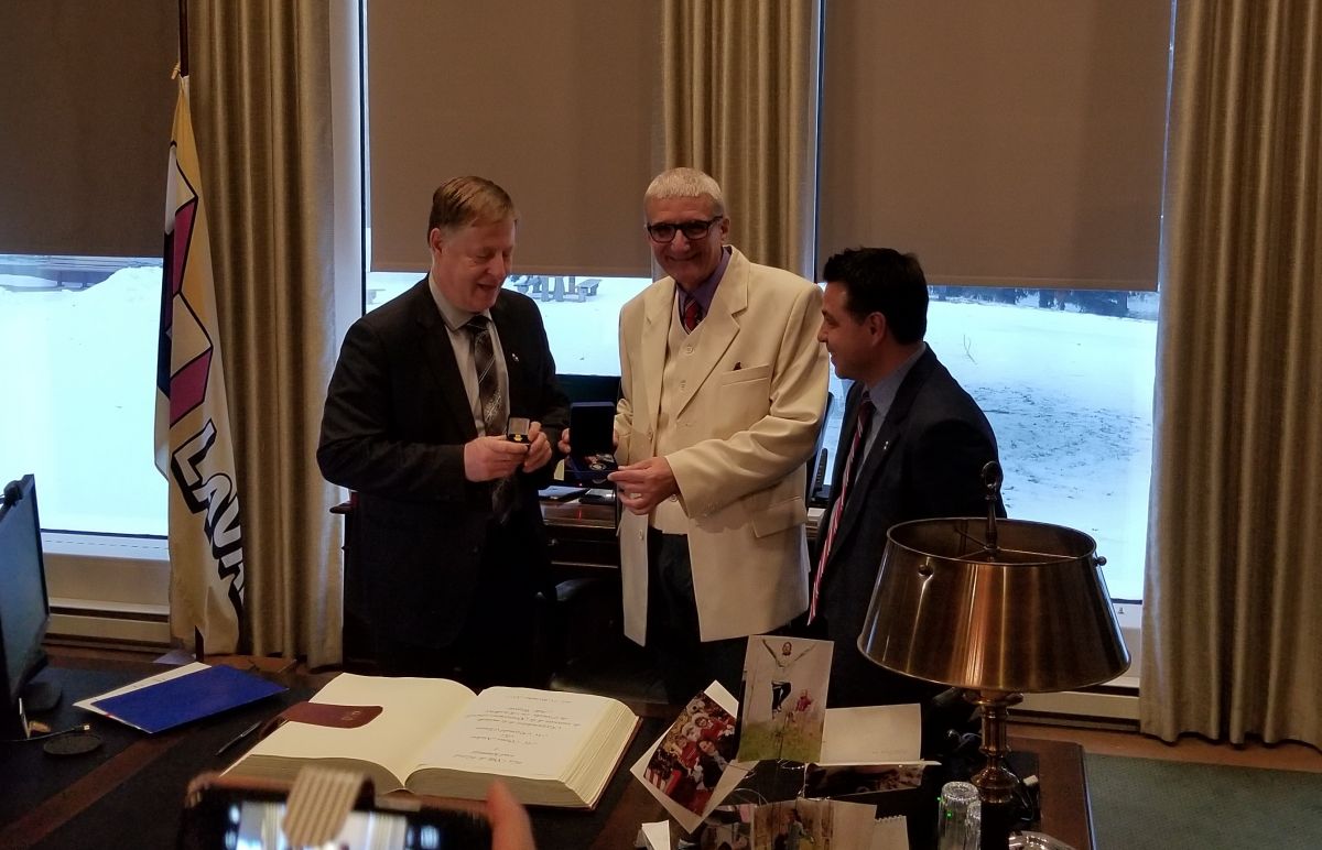 Cu aceasta ocazie Marc Demers reales ca primar al orasului Laval in noiembrie 2017 pentru inca un mandat de 4 ani a oferit prin Vania Atudorei, primarului Catalin Mugurel Flutur insigna de aur a orasululi Laval si drapelul orasului Laval, oras care cu cei 430 000 de locuitori ai sai este al treilea mare oras din Canada franceza si al 13-les oras din Canada .