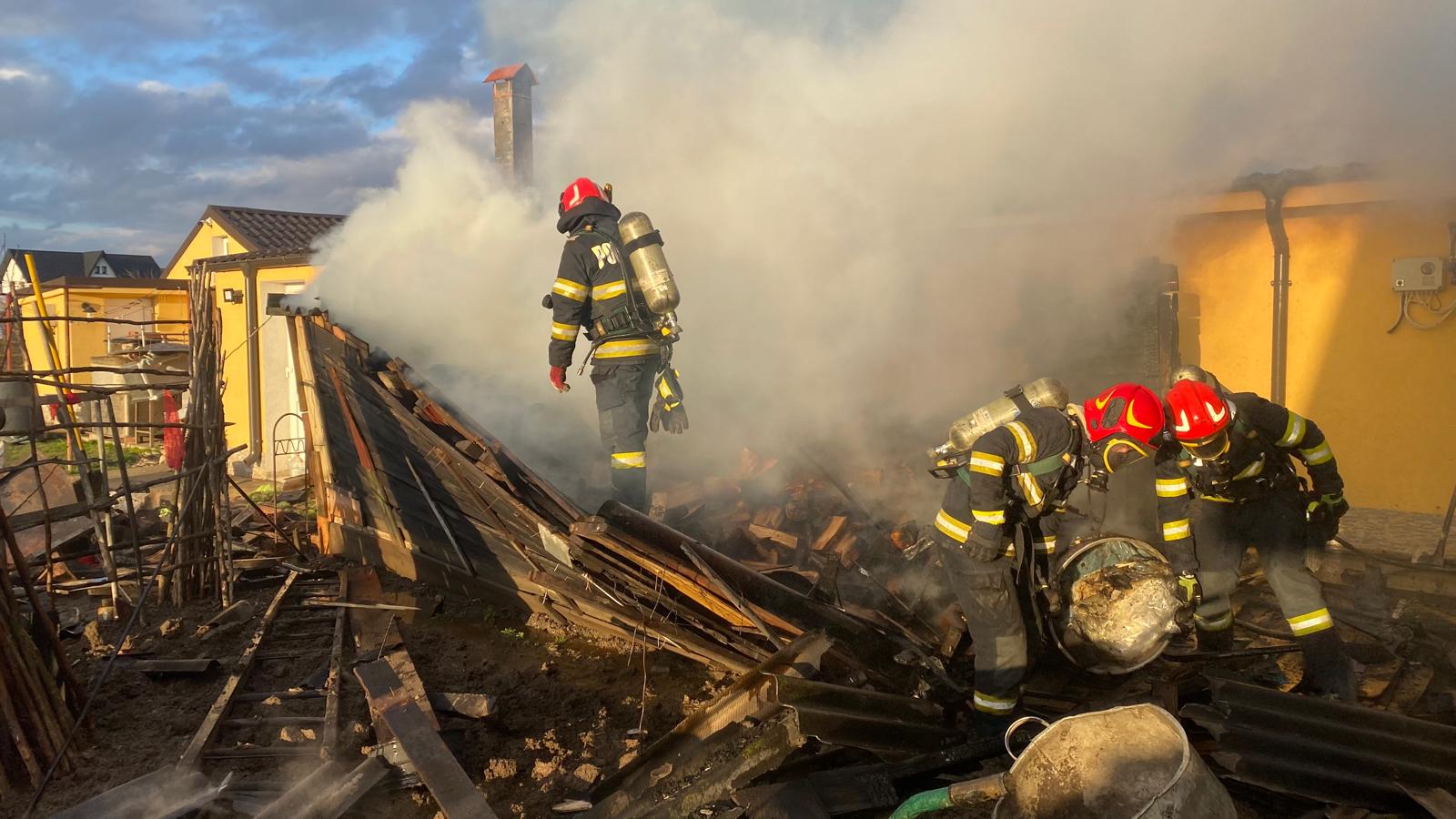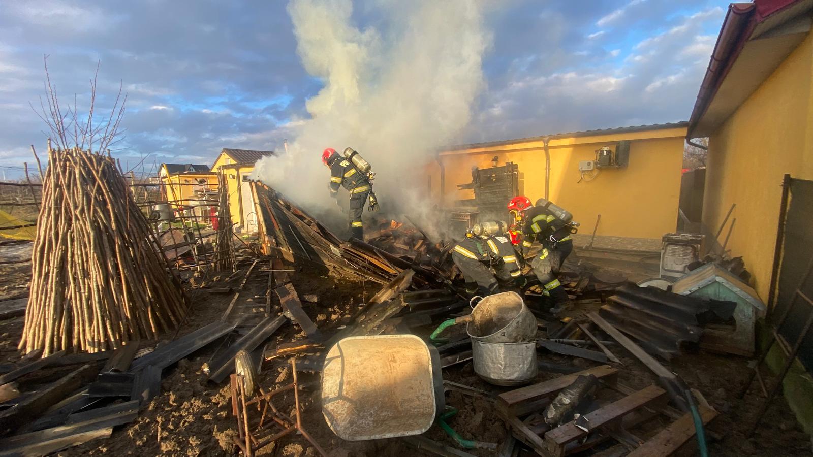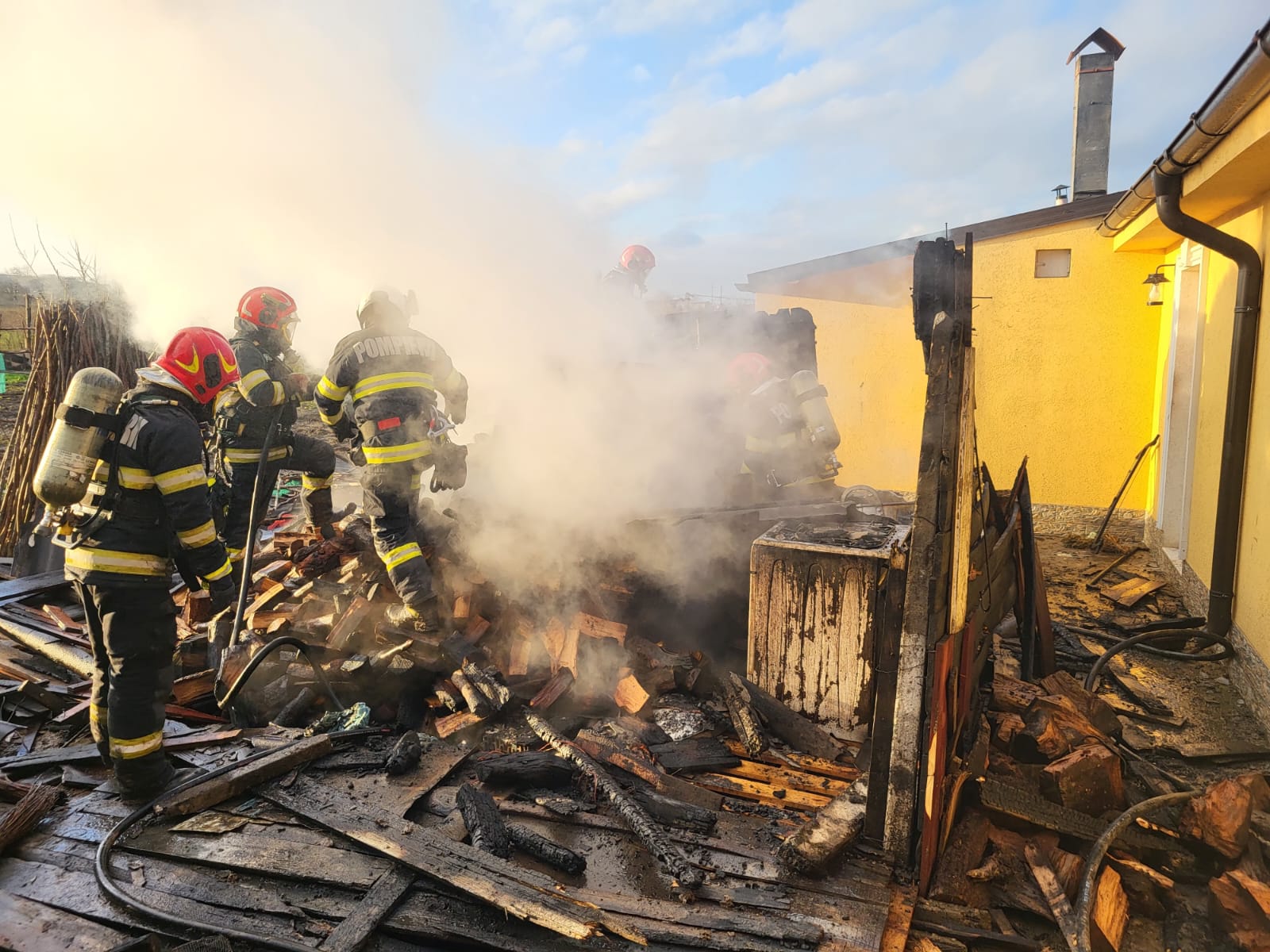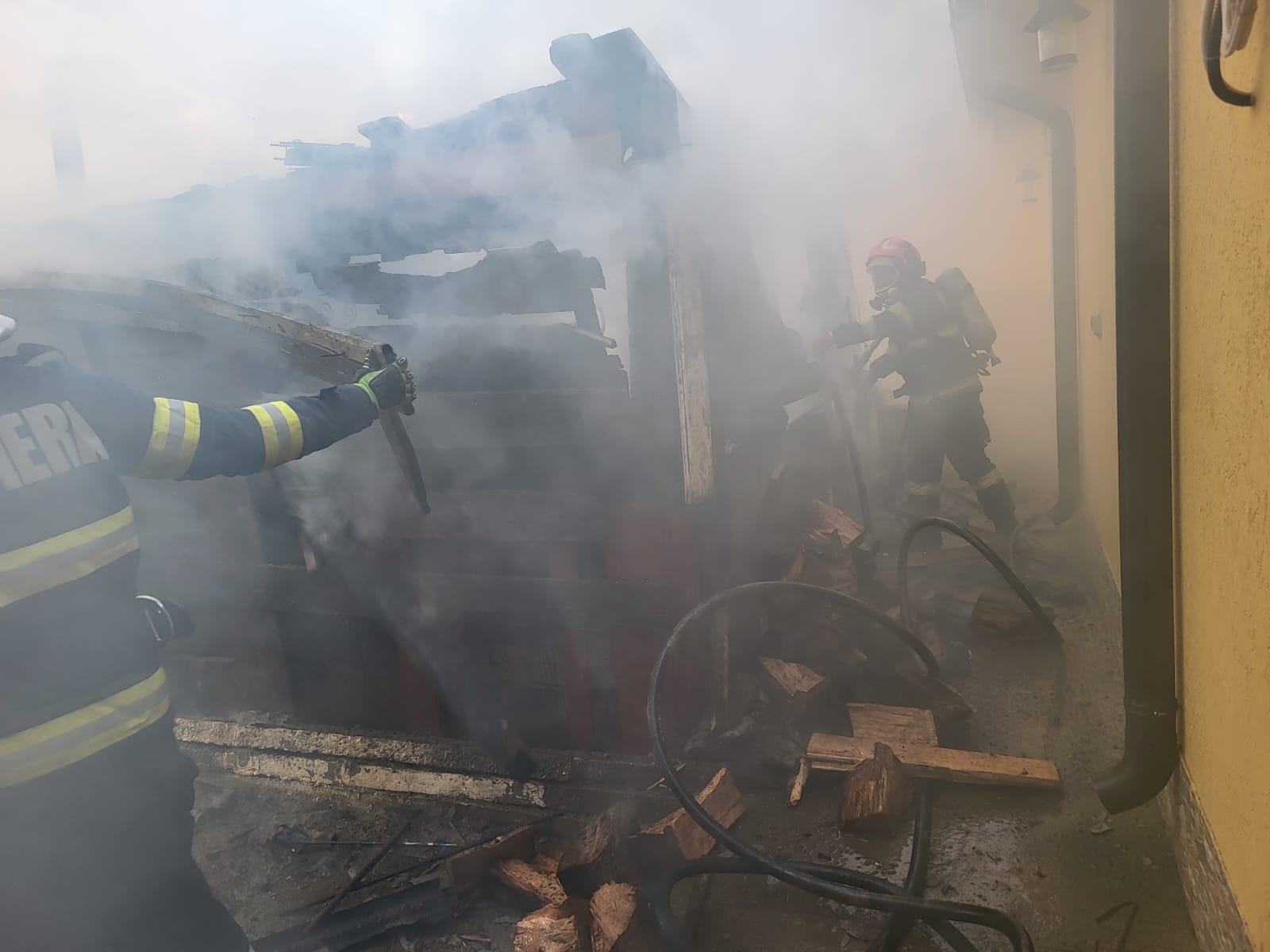 Un incendiu s-a produs, în urmă cu puțin timp, într-o gospodărie din localitatea Orășeni Deal. O magazie a fost cuprinsă de flăcări. Proprietarul a încercat să stingă focul și a suferit arsuri la față și mâini. O vecină a sunat la pompieri, îngrijorată că flăcările s-ar putea extinde la casă.