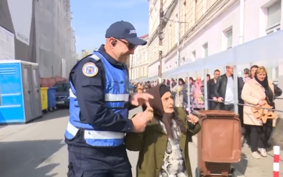 Plină de recunoștință, femeia a sărutat mâinile jandarmilor care au ajutat-o să ajungă la raclă și a izbucnit în plâns atunci când a atins-o pe Sfânta Parascheva.