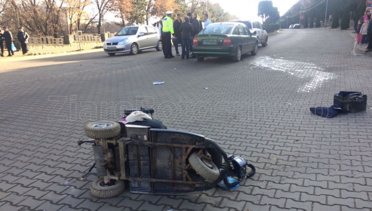 Din primele cercetări, se pare că o femeie cu handicap locomotor, care se deplasa într-un căruț special a pătruns pe partea carosabilă dinspre strada 1Mai, spre Bulevardul Victoriei, unde a apărut brusc în fața unui autoturism Opel Astra, care a frânat, dar fost lovit din spate de un alt autoturism Opel Vectra.
