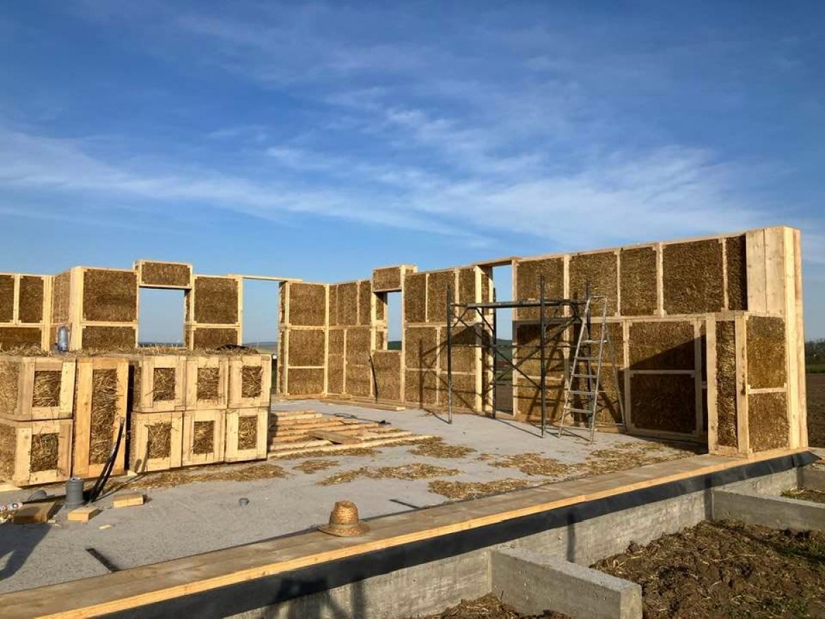 "Pereţii exteriori sunt compuşi din panouri. Au ramă de lemn, iar în interior sunt baloţi de paie comprimaţi hidraulic. Avantajul e că sunt un foarte bun izolator. Tencuielile vor acumula căldură și vor elibera căldură treptat",