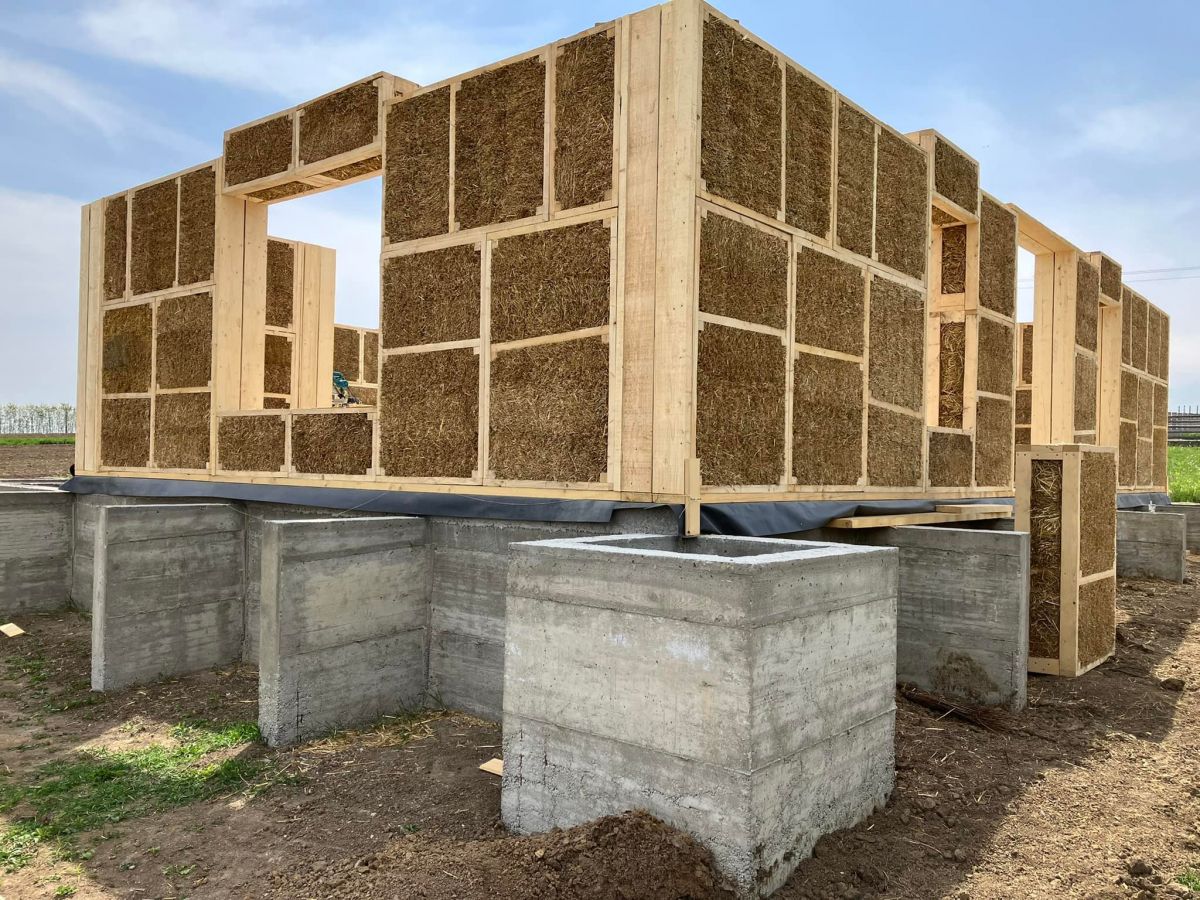 78 de panouri din lemn și paie au fost folosite pentru a construi casa asemeni unui puzzle. Pereții exteriori vor avea o grosime de 50 de centimetri, cu tot cu tencuială. Chiar și pereții interiori vor fi umpluți cu paie și lut.