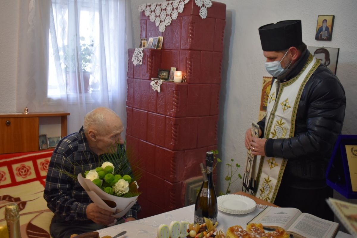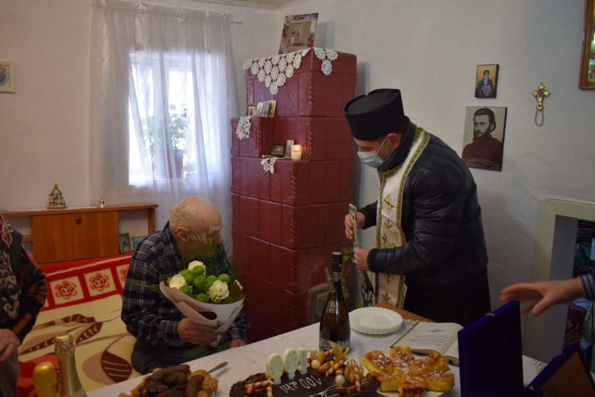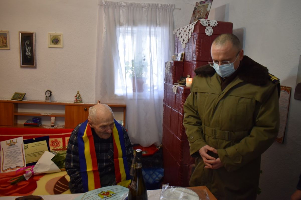 O vârstă venerabilă care a fost sărbătorită în familie și cu prezența preotului paroh din sat, a primarului și a doi reprezentanți ai Centrului Militar Județean (CMJ).