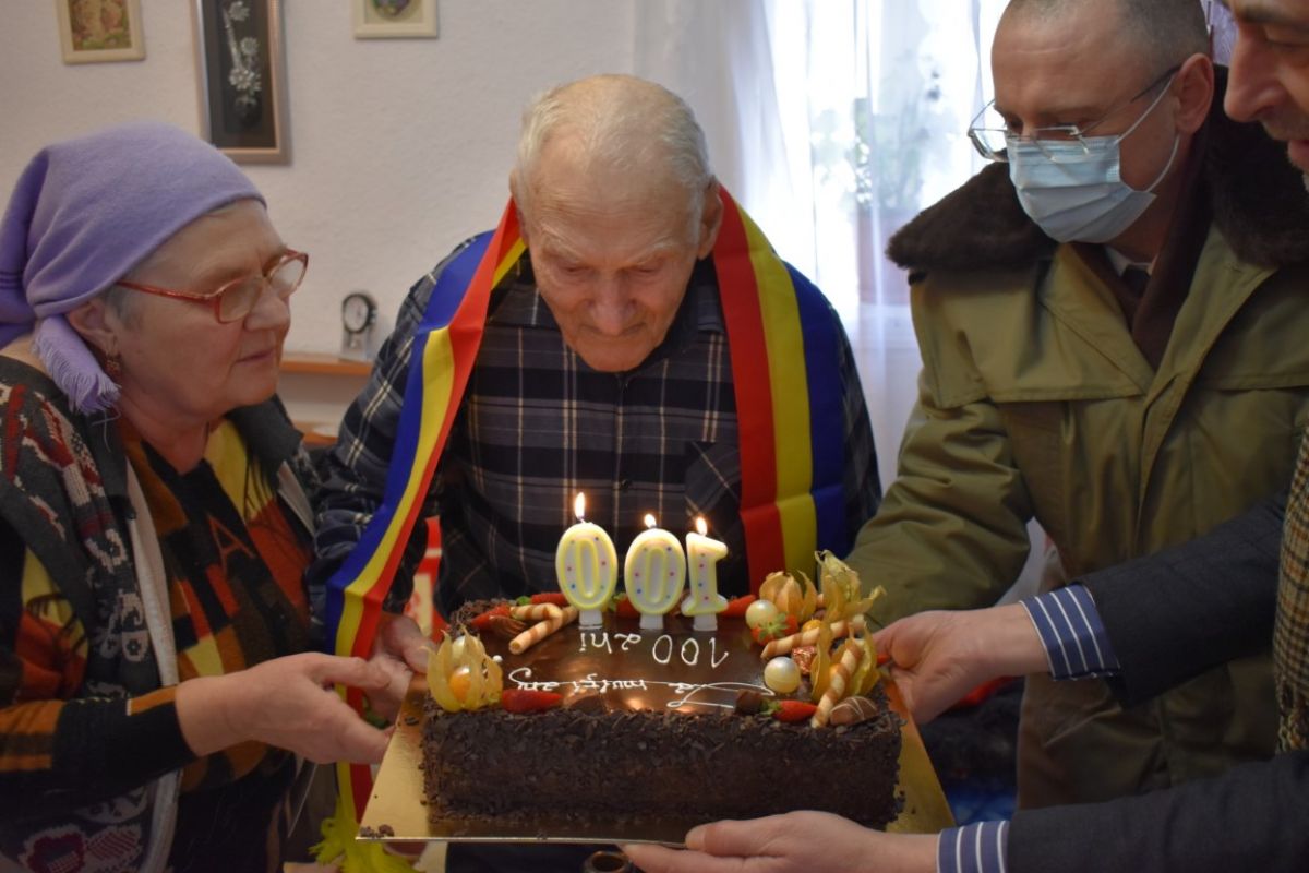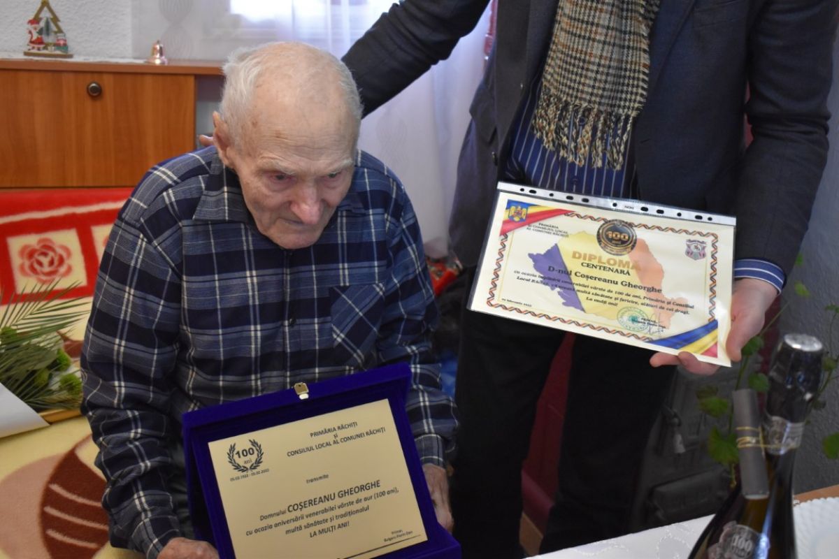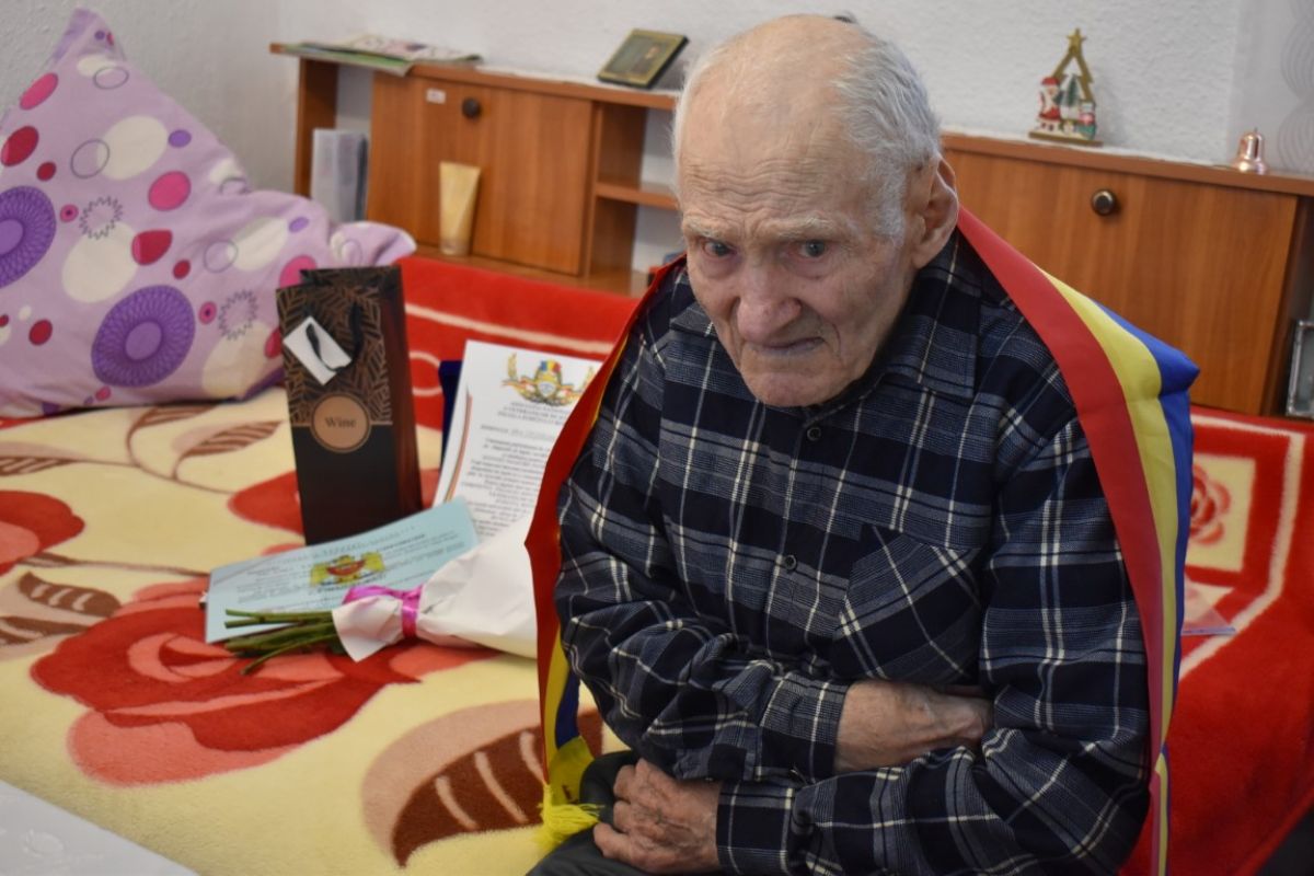 „Din partea Primăriei, la mulți ani cu sănătate”, i-a urat primarul Florin Bulgaru, care i-a adus veteranului din comuna sa o plachetă, o diplomă și un premiu financiar în valoare de 1.000 de lei.