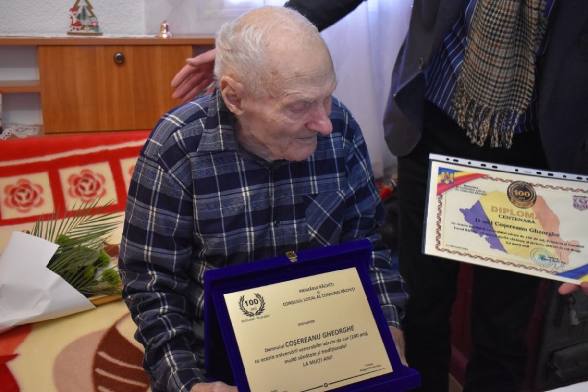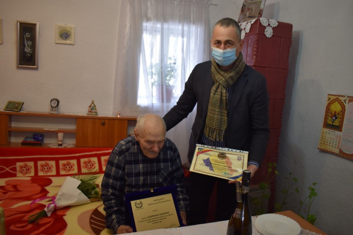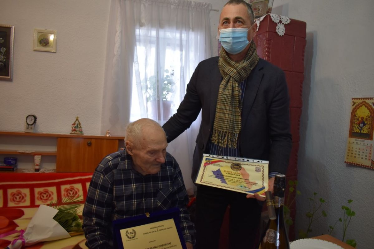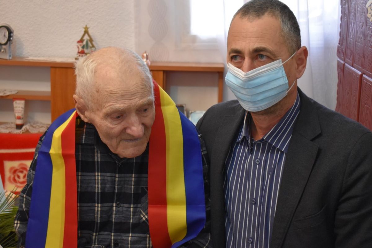 „Din partea Primăriei, la mulți ani cu sănătate”, i-a urat primarul Florin Bulgaru, care i-a adus veteranului din comuna sa o plachetă, o diplomă și un premiu financiar în valoare de 1.000 de lei.