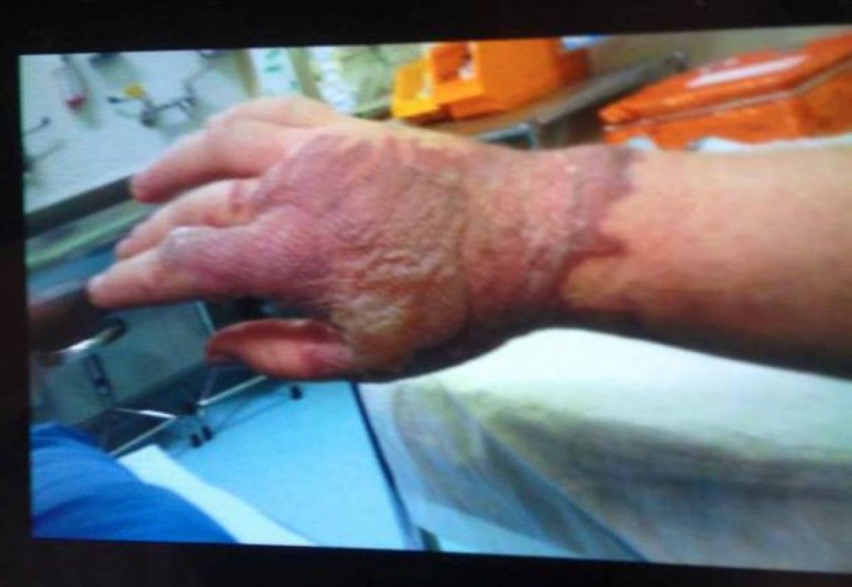Fostul concurent de la show-ul culinar are un braț acoperit de arsuri iar mâna este plină de bășici și foarte umflata. Prietenii virtuali au fost șocați atunci când au văzut cât de rău s-a accidentat. (Sursa: Libertatea)