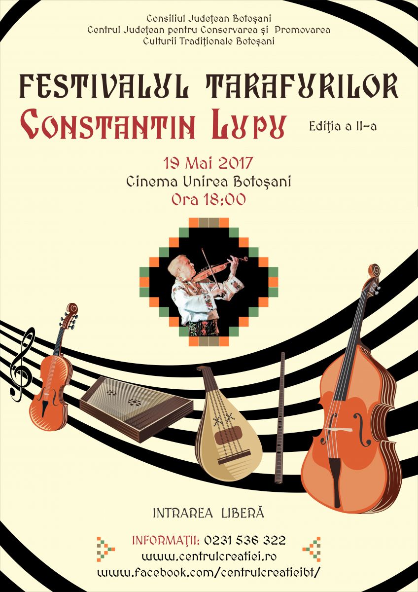 Mâine, 19 mai 2017, botoşănenii sunt invitaţi la Festivalul Tarafurilor “Constantin Lupu”, se arată într-un comunicat de presă.