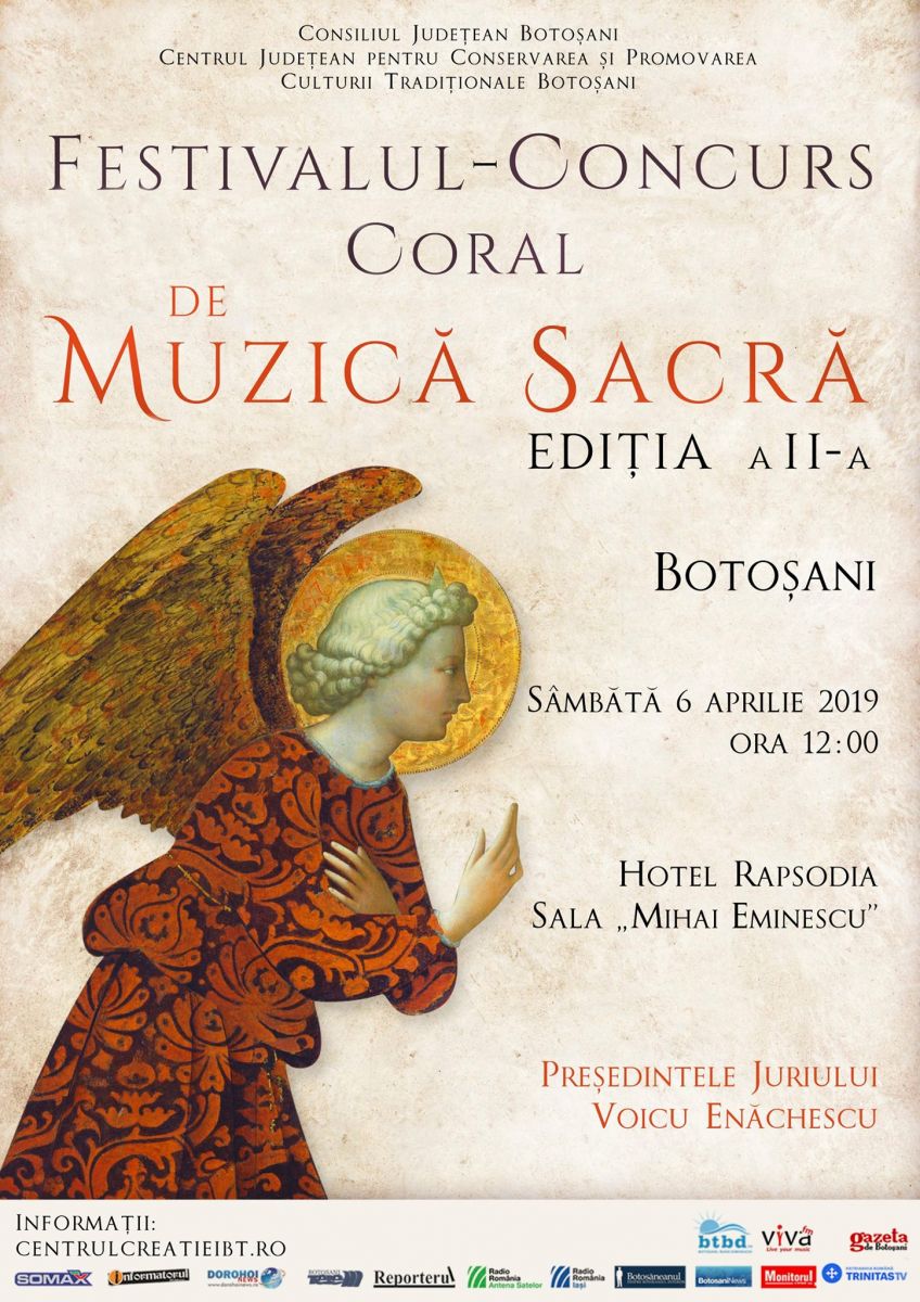 Centrul Judeţean pentru Conservarea şi Promovarea Culturii Tradiţionale Botoşani, instituţie publică de cultură aflată în subordinea Consiliului Judeţean Botoşani, organizează Festivalul - Concurs Coral de Muzică Sacră, ediţia a II-a.