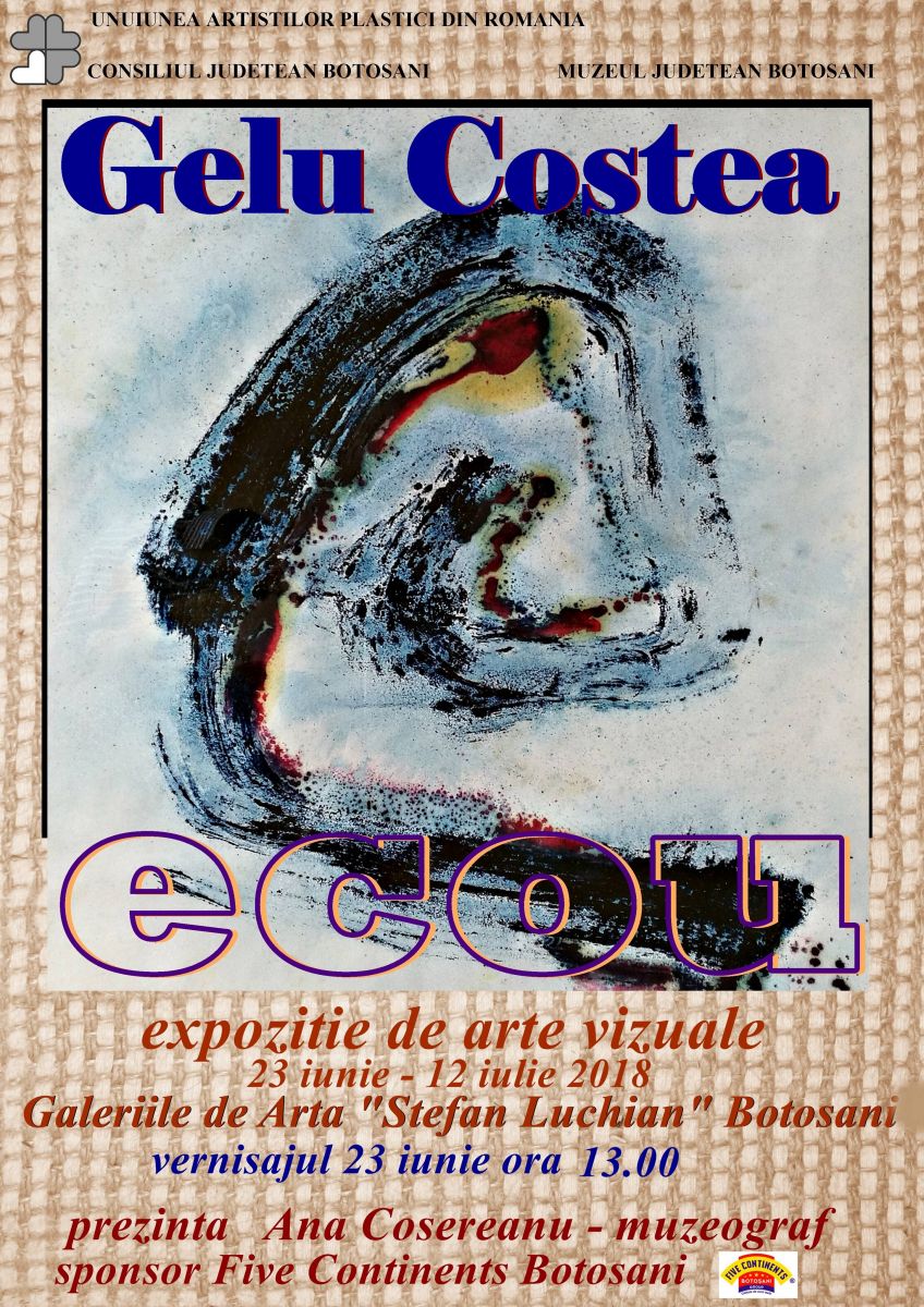 Muzeul Judeţean Botoşani găzduieşte în perioada 21 iunie -15 iulie 2018, în spaţiul Galeriilor de Artă ,,Ştefan Luchian” Botoşani, expoziţia personală ,,Ecou” cu lucrări semnate de artistul plastic Gelu Costea.