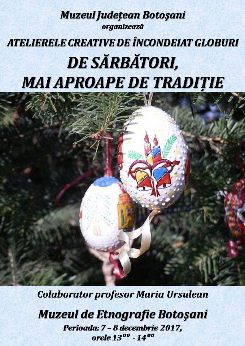 În perioada 7 - 8 decembrie 2017 botoşănenii sunt aşteptaţi cu mic cu mare la un atelier creativ de încondeiat globuri.