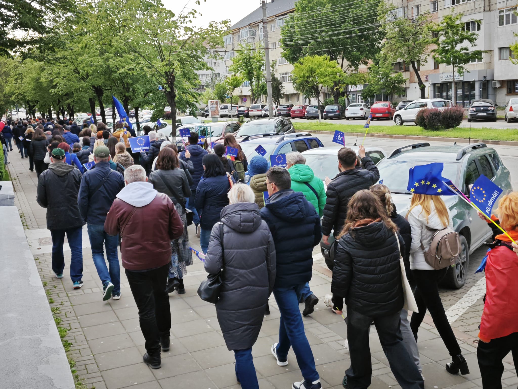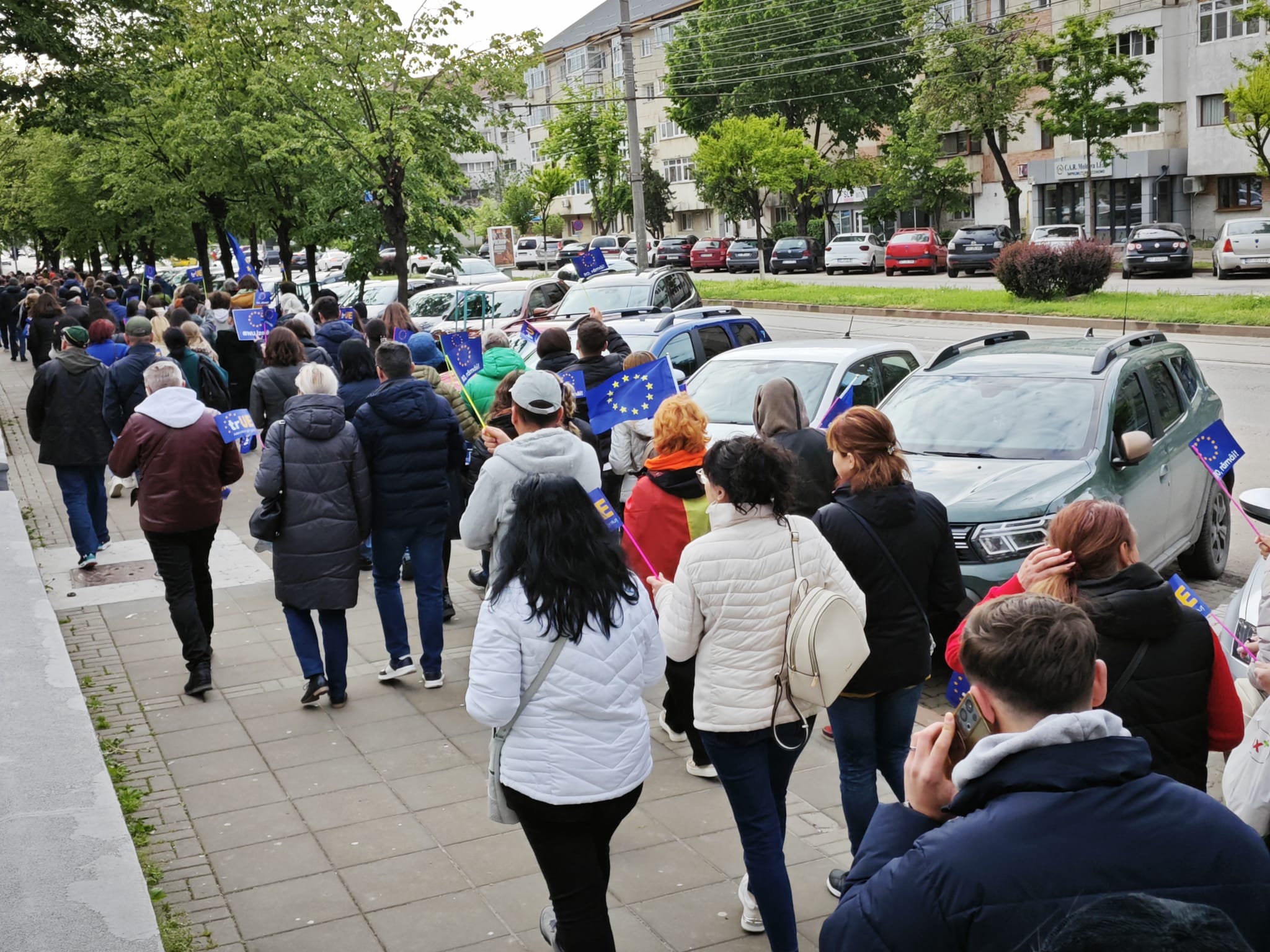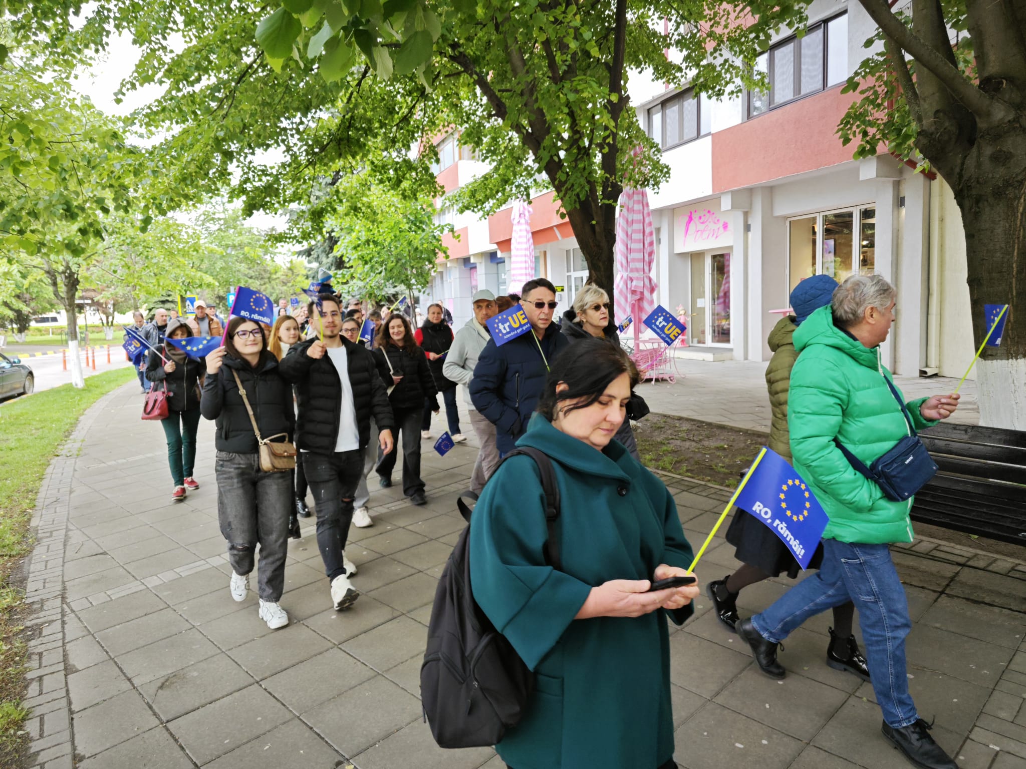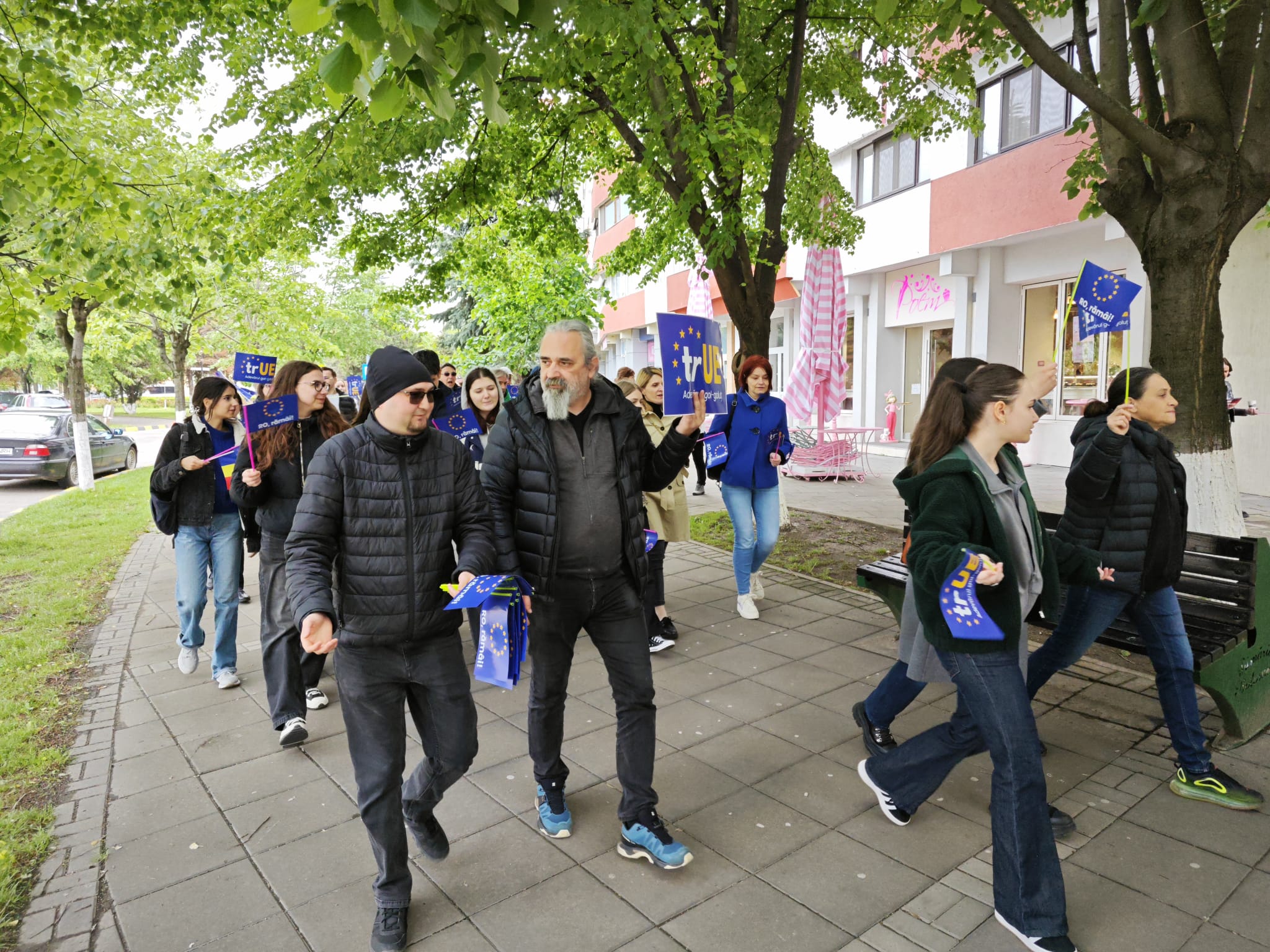 Cu steagurile României și al Uniunii Europene în mâini, adolescenți, salariați, pensionari, încearcă să tragă un semnal de alarmă asupra pericolului ca partidele extremiste și unul dintre candidații la președinția României să scoată țara din UE.