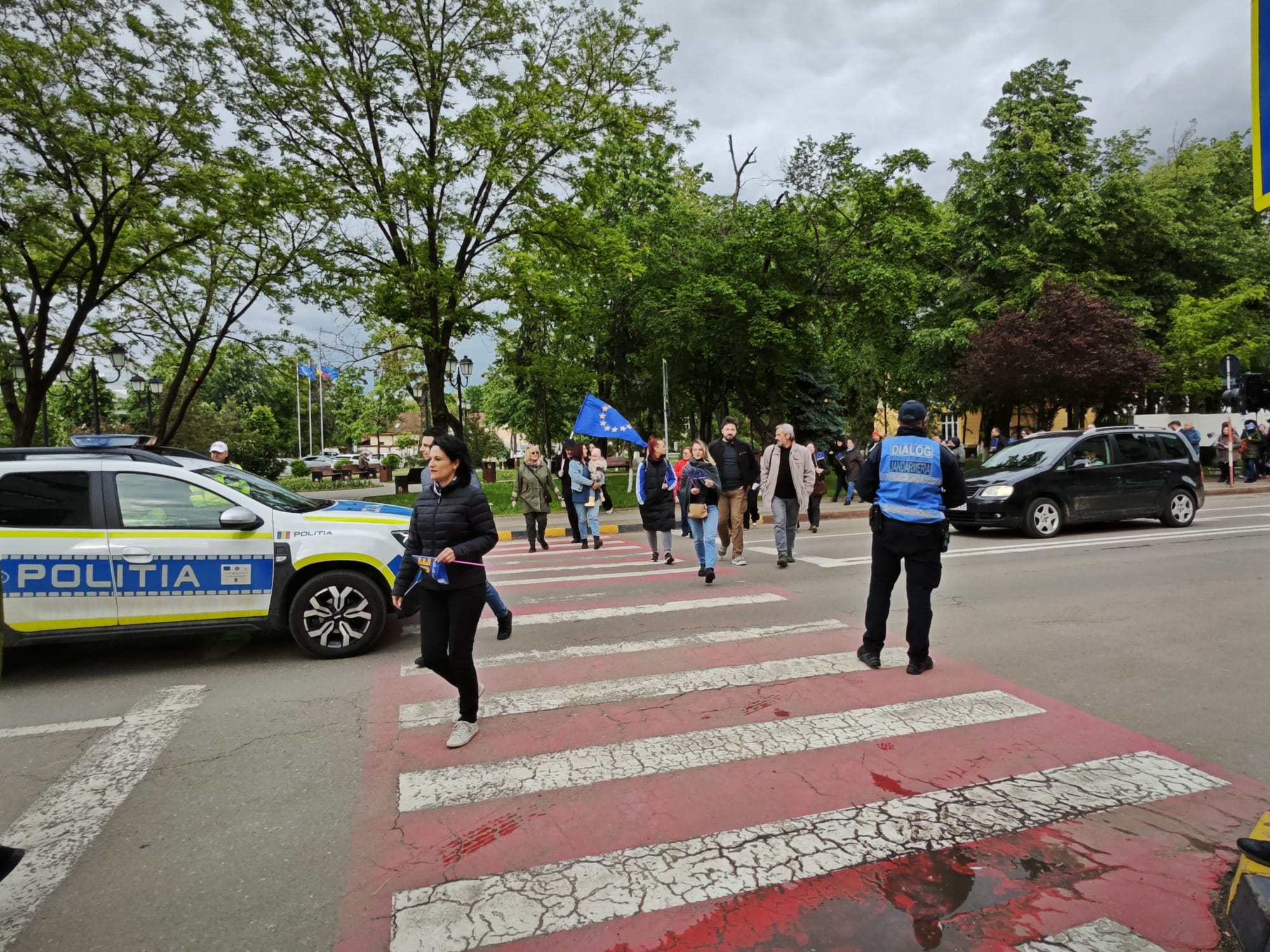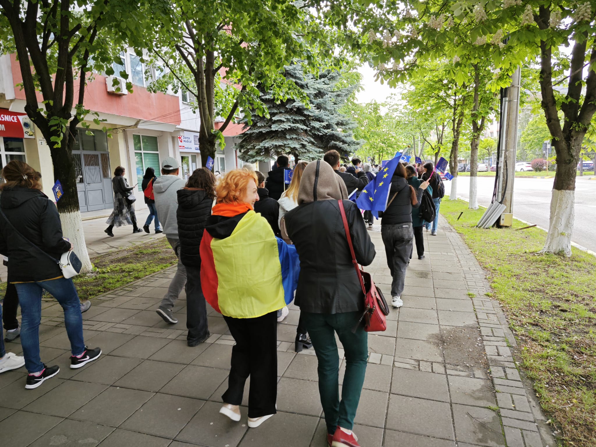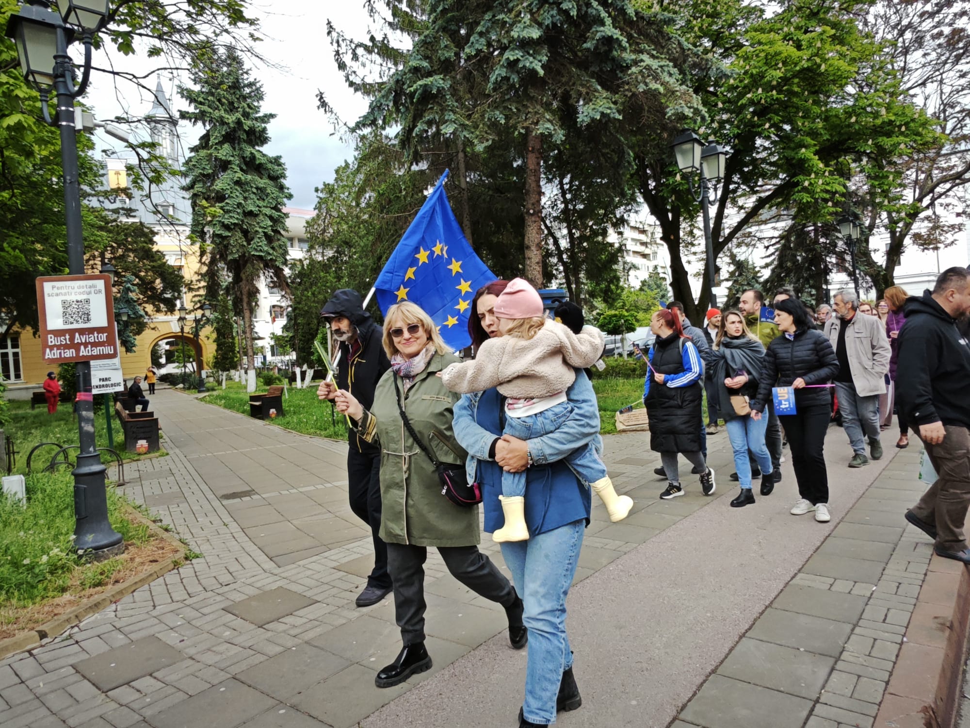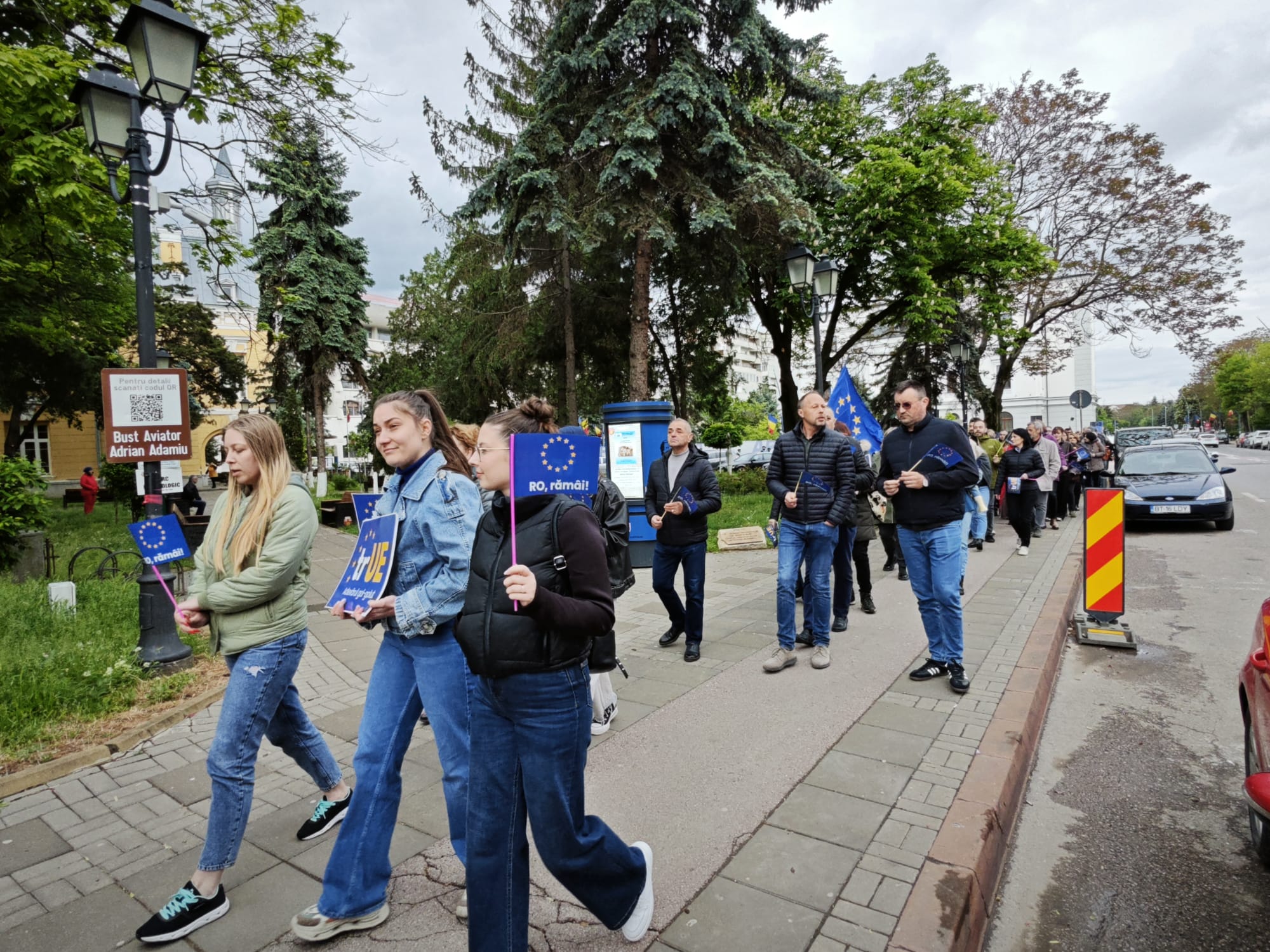 Cu steagurile României și al Uniunii Europene în mâini, adolescenți, salariați, pensionari, încearcă să tragă un semnal de alarmă asupra pericolului ca partidele extremiste și unul dintre candidații la președinția României să scoată țara din UE.