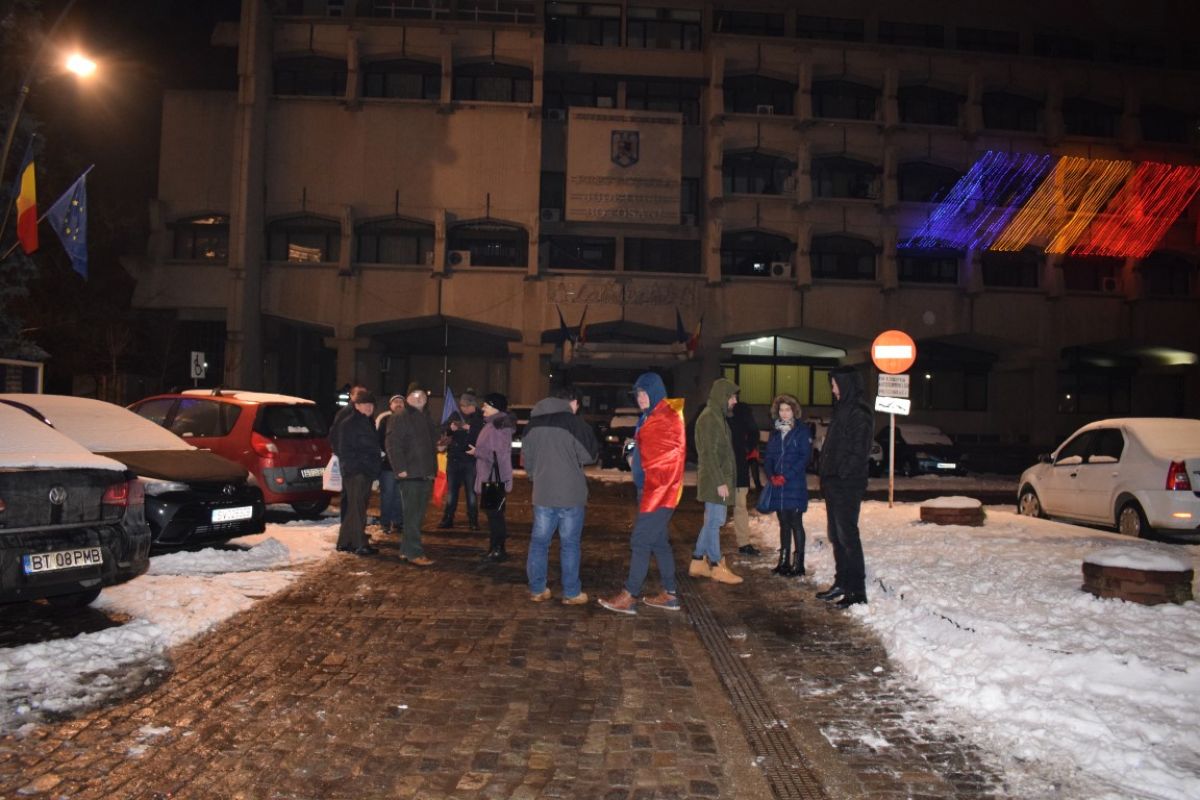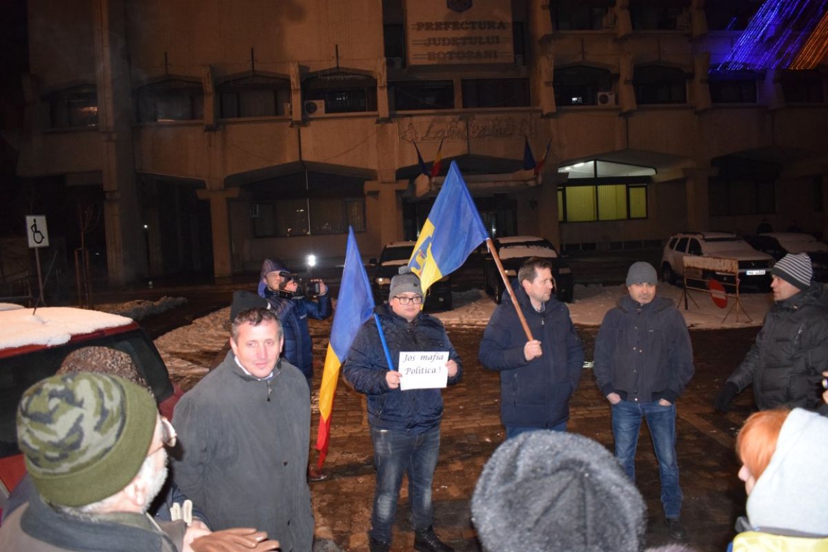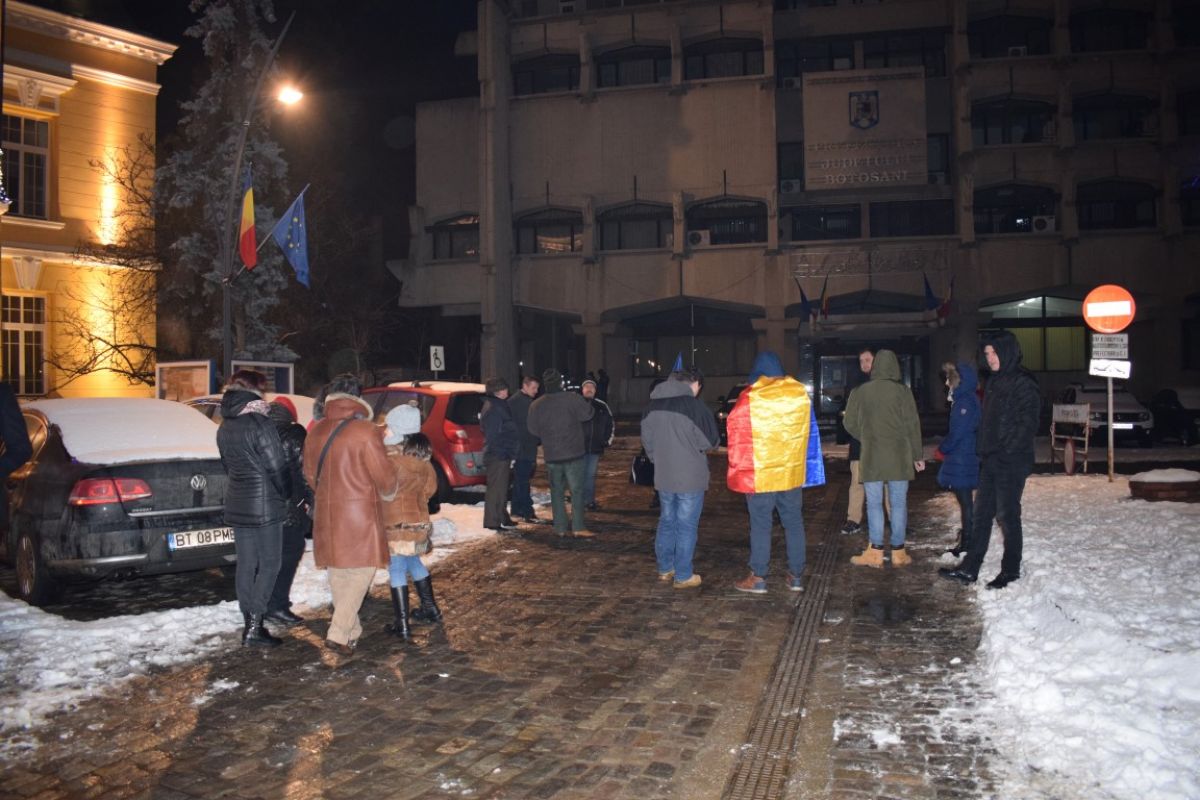 Pe un frig care tăia fețele, la Botoșani protestul a început firav. Cu trecerea minutelor a crescut în intensitate, iar locul ce le era destinat oamenilor nemulțumiți, a început să se umple.