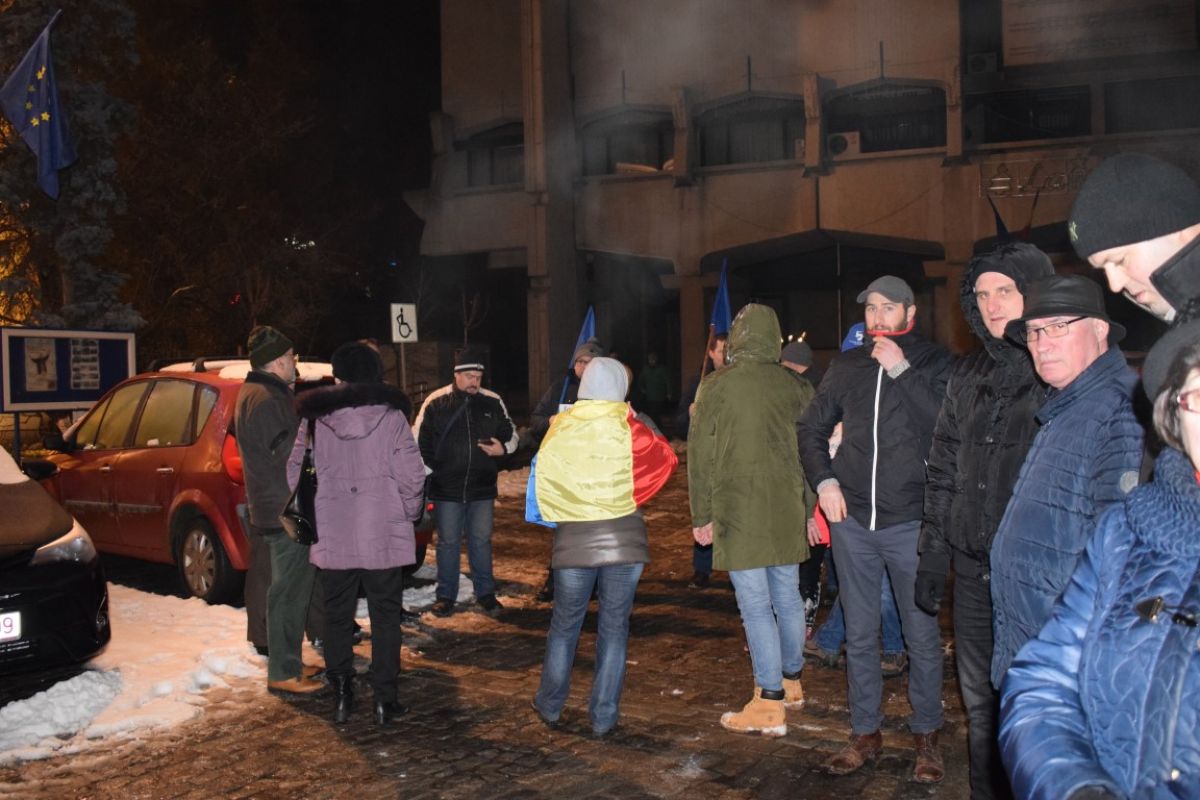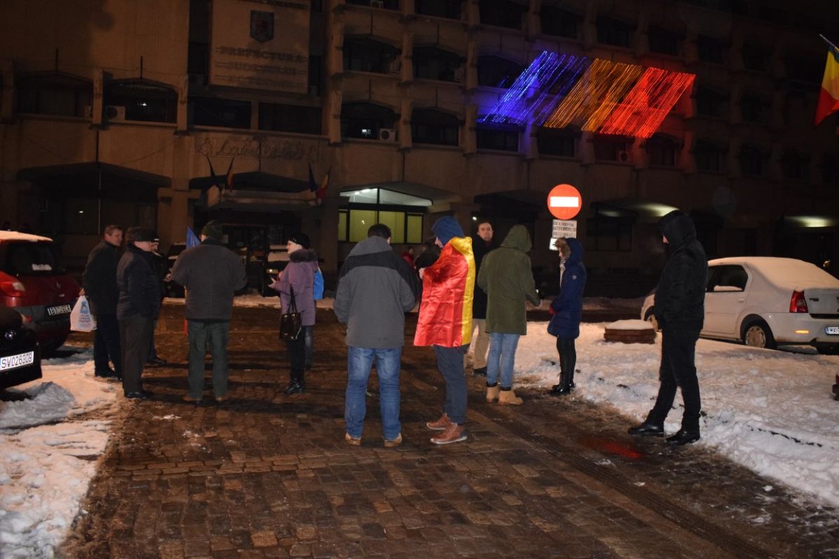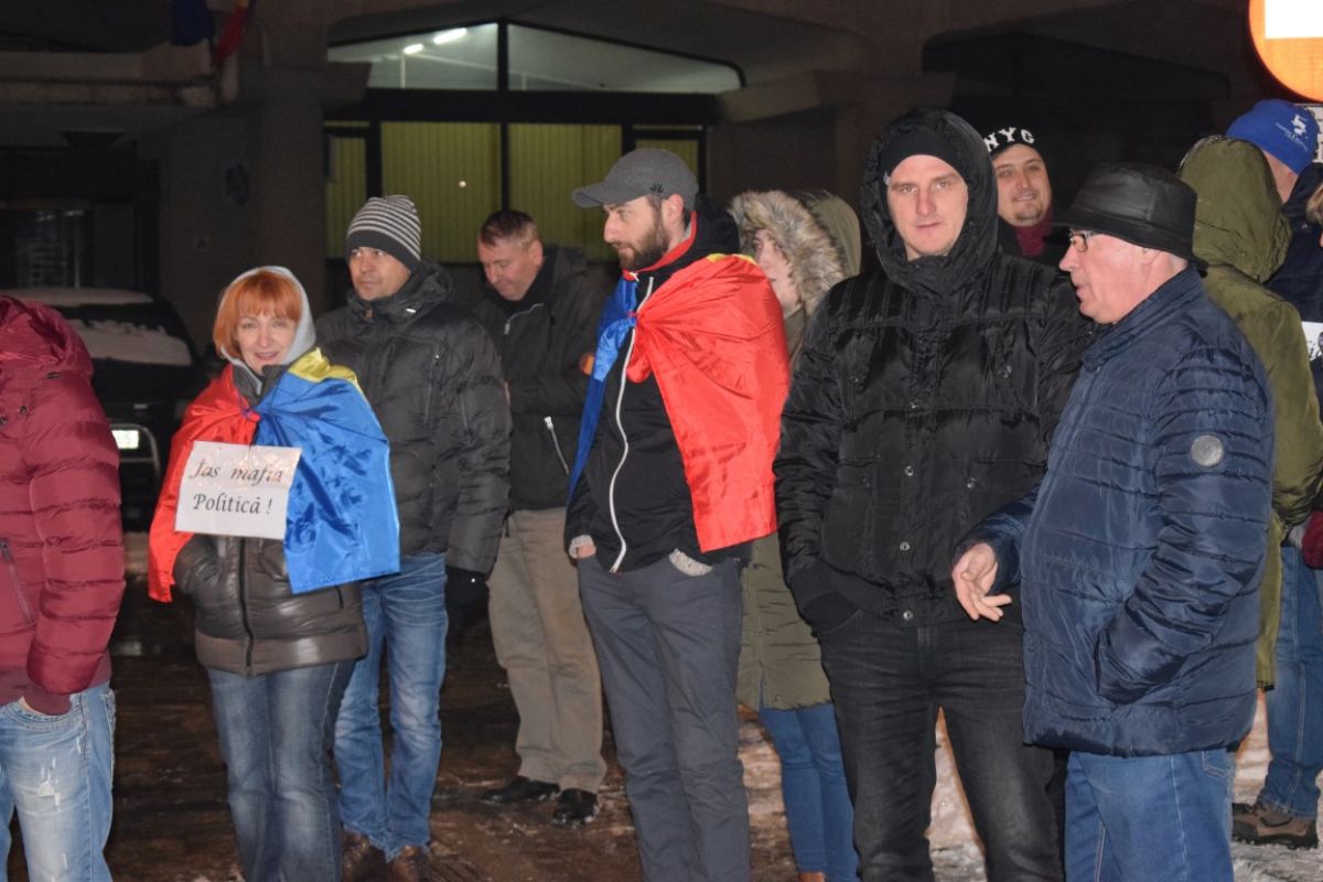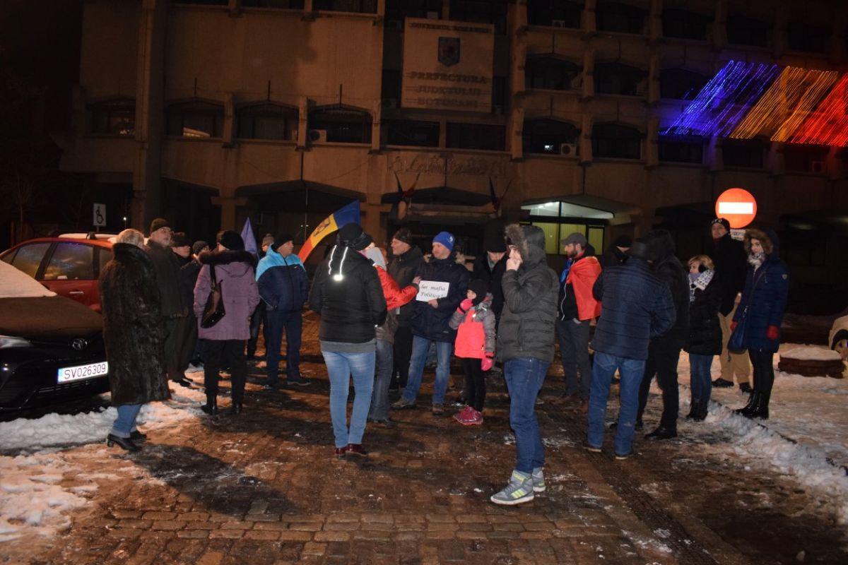 Pe un frig care tăia fețele, la Botoșani protestul a început firav. Cu trecerea minutelor a crescut în intensitate, iar locul ce le era destinat oamenilor nemulțumiți, a început să se umple.