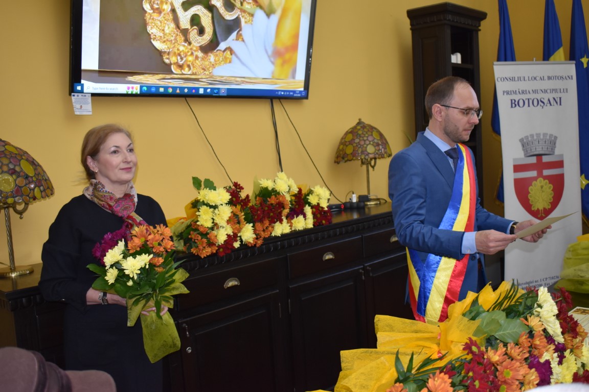 „Vreau să vă felicit și pe dv. pentru că ați ajuns la 50 de ani de căsătorie și chiar 60 de ani de căsătorie. Nu știu dacă e mult sau puțin dar e o viață de om cu bune, cu rele și pentru acest lucru iată, Municipiul Botoșani vă felicită și într-un cadru festiv. Am onoarea să fiu astăzi aici să vă pot înmâna diplomele și florile alături de sumele de bani pe care le-am aprobat în Consiliul Local”,