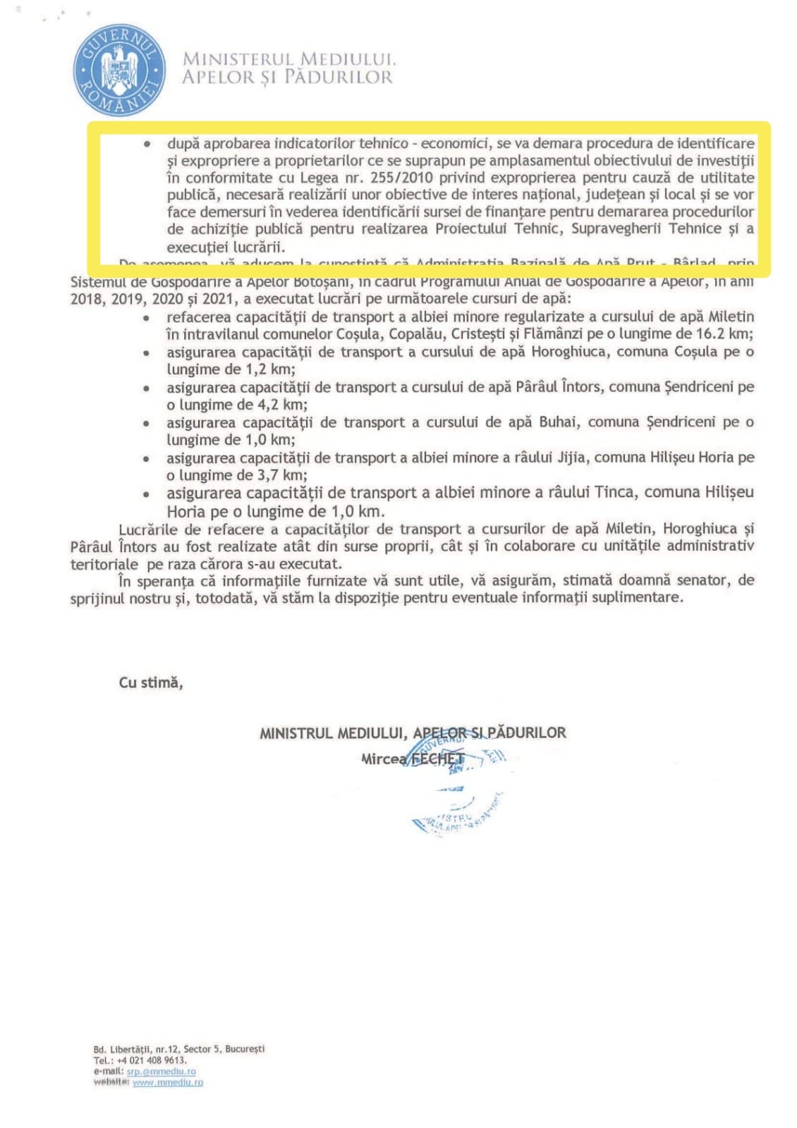 Aceste calamități puteau fi evitate, dacă Ministerul Mediului, Apelor și Pădurilor și-ar fi făcut datoria în timp util și cu responsabilitate. Senatorul Doina Federovici, președintele PSD Botoșani, a atras atenția asupra acestei situații încă din luna martie, când a interpelat oficial, de la tribuna Senatului, ministrul Mediului, Mircea Fechet.