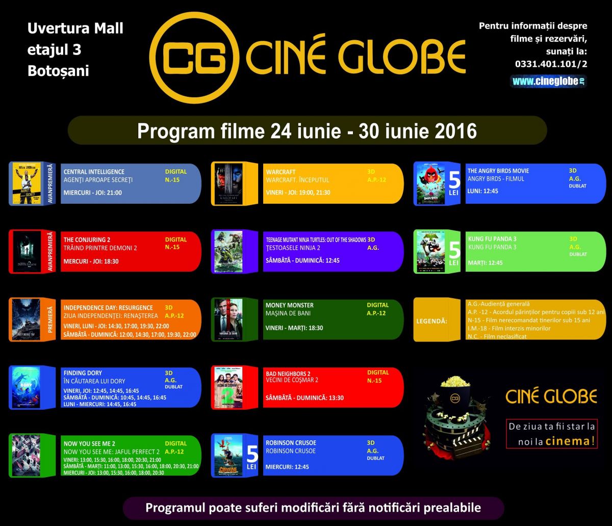 O premieră și două avanpremiere vor rula pe marile ecrane ale multiplexului din incinta Uvertura Mall în perioada 24 – 30 iunie 2016. Botoșănenii au ocazia să vadă o pelicula plină de acțiune, în format 3D.