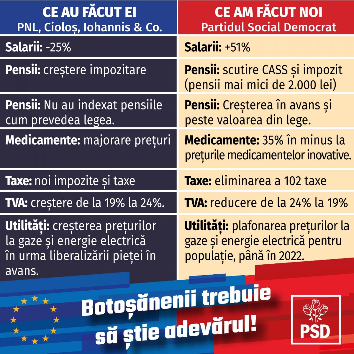 „Suntem conștienți că mai sunt încă multe lucruri de realizat și de pus în aplicare pentru ca veniturile românilor să ajungă la nivelul mediu al celor mai avansate state din Uniunea Europeană. Cu toate acestea, în 2017 și în 2018 am recuperat ce s-a pierdut în perioada guvernării tehnocrate, am deblocat proiecte europene, am reparat nedreptățile la care au fost supuse toate categoriile sociale de populație, în special medicii și profesorii și am început să dăm drumul la investiții”, a declarat președintele PSD Botoșani Doina Federovici.