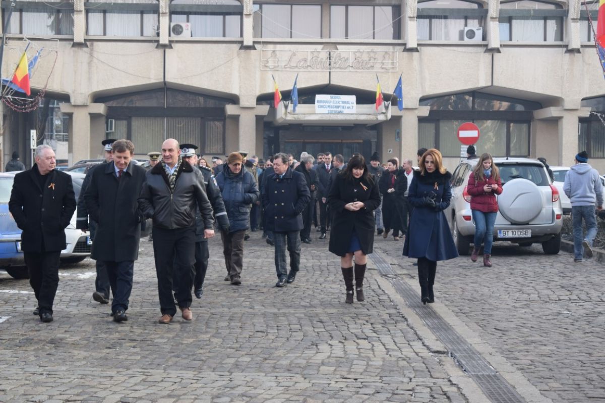 Acolo, prefectul, președintele Consiliului Județean, primarul și revoluționarii sau directori ai unor instituții de la Botoșani s-au deplasat în coloană pe jos, calea fiindu-le deschisă de un echipaj de la Poliția Rutieră.