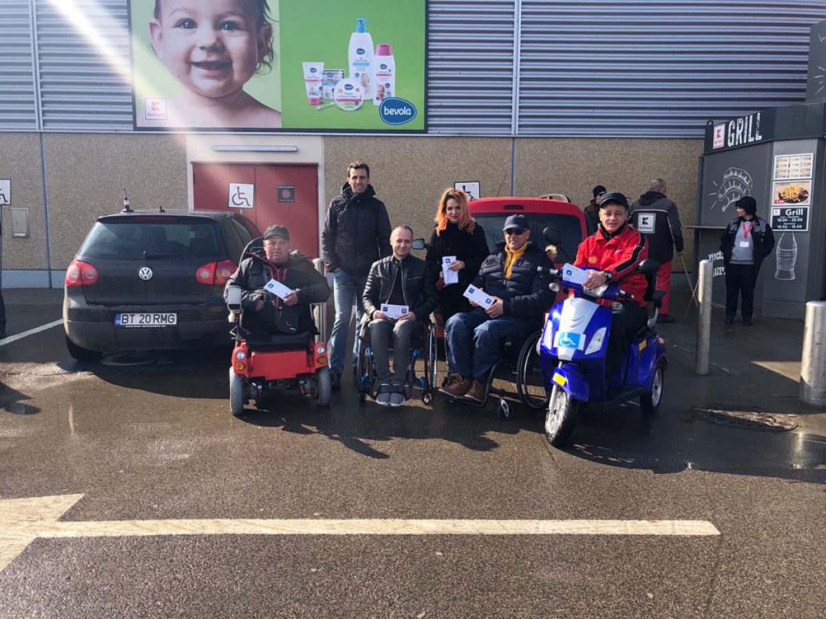După ce au împărțit pliante în parcarea de la Kaufland, persoanele cu dizabilități au mers și în cea de la Carrefour.