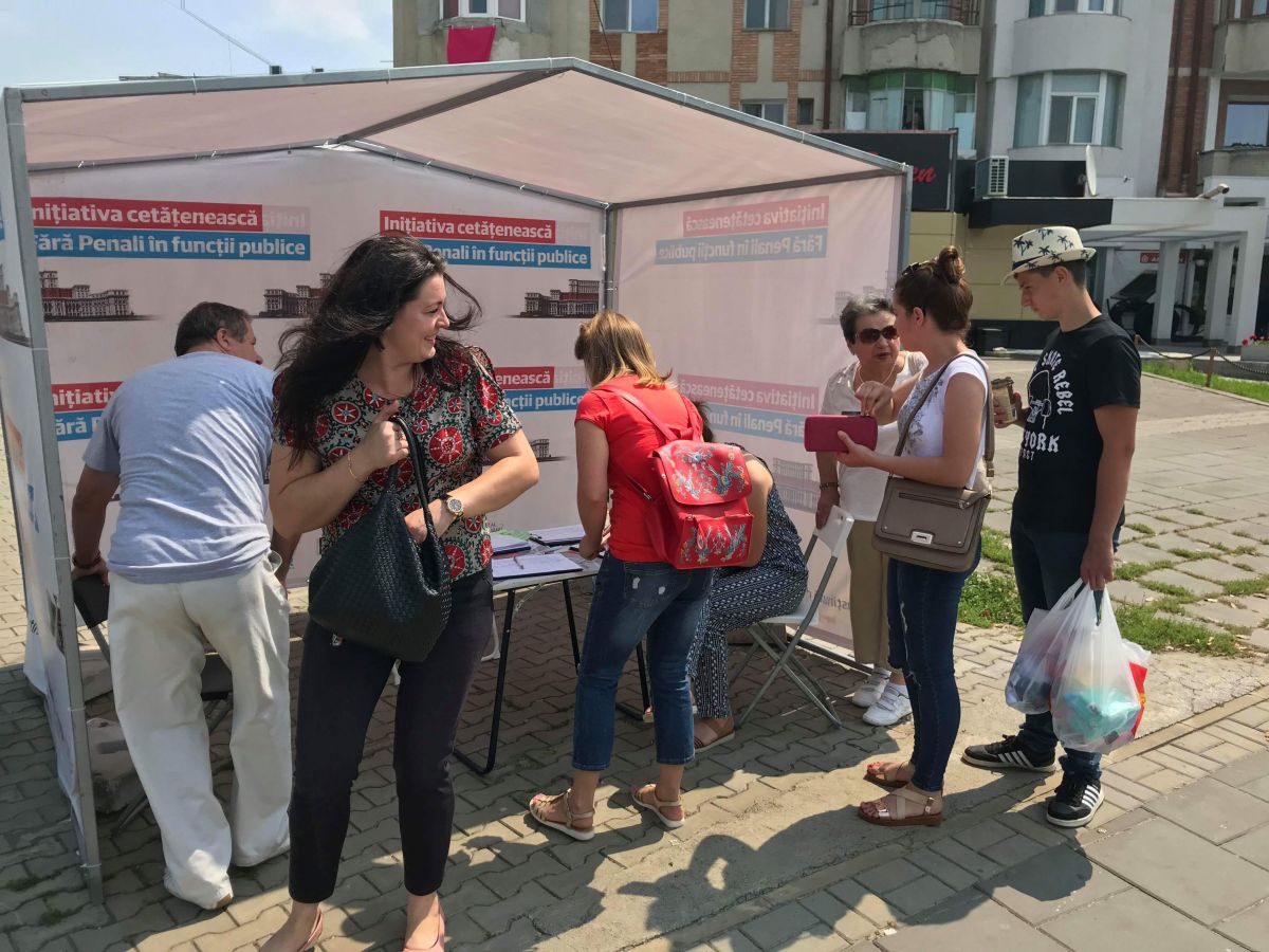 Cortul montat lângă Uvertura Mall a atras deja sute de oameni convinși că modificarea lansată de USR este una imperativă, în sensul combaterii corupției, care au stat chiar și la coadă pentru a putea semna.