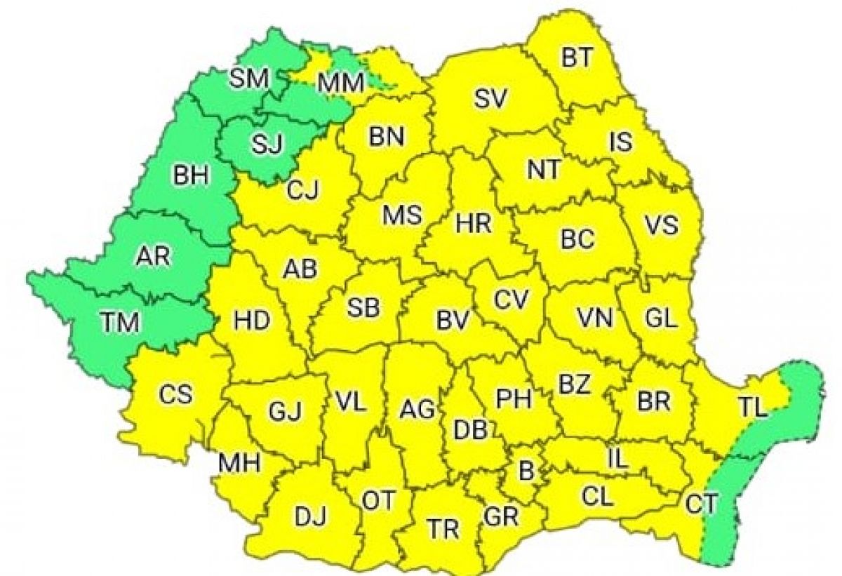 Administraţia Naţională de Meteorologie a transmis o atenționare tip cod galben de instabilitate atmosferică accentuată, valabilă de astăzi, de la ora 11:00, până mâine dimineață, la ora 06:00.