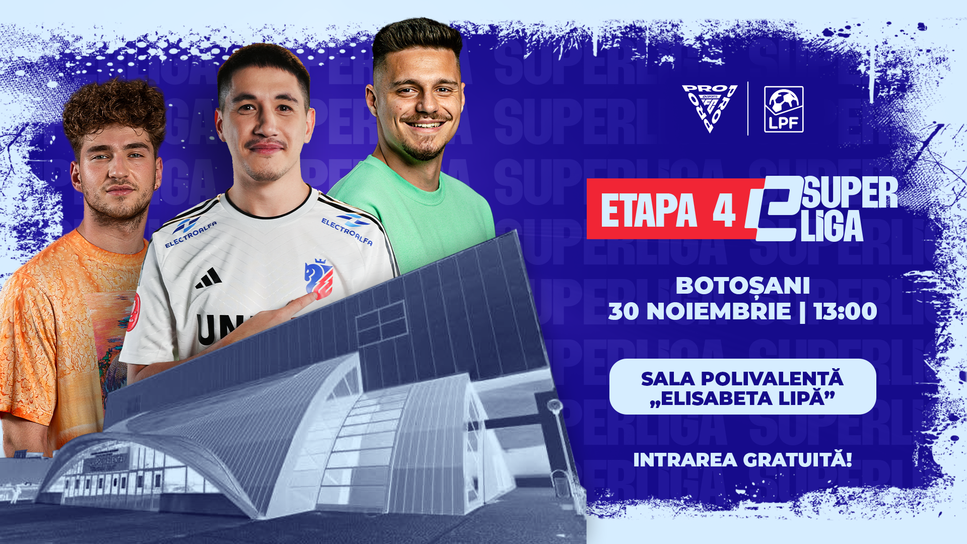 Primul sezon eSuperliga, liga de esports afiliată oficial Superligii de fotbal a României, continuă la Botoșani cu a patra etapă ce va avea loc sâmbătă, 30 noiembrie, la Sala Polivalentă Elisabeta Lipă.