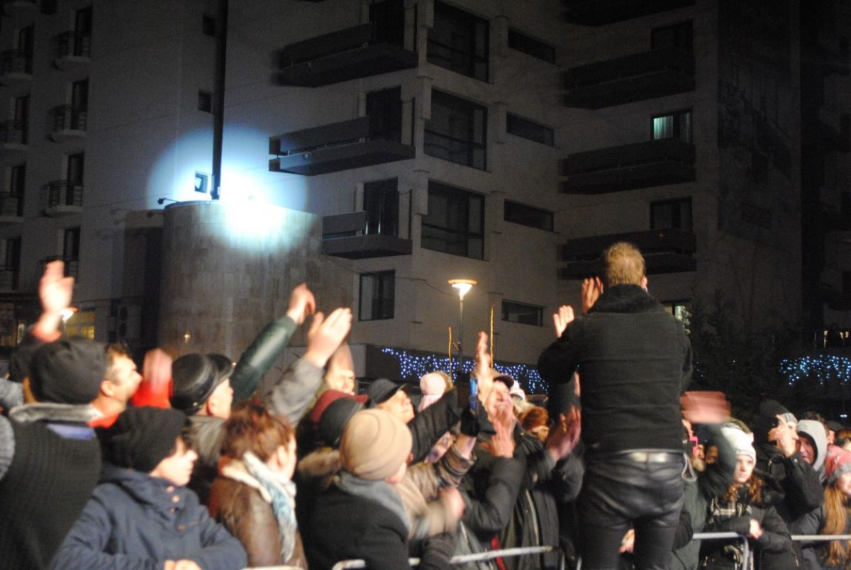 Aproape nelipsit de la evenimentele organizate de municipalitate, Aurel Moldoveanu a fost prezent şi în acest an. Artistul a cântat împreună cu cei prezenți în centrul oraşului, iar la un moment dat a coborât de pe scenă spre public, unde a făcut poze cu admiratorii, a dat mâna cu ei și chiar s-a apucat de făcut glume celor prezenți pentru a mai destinde atmosfera. S-a urcat şi pe gardul montat de foreţele de ordine, unde, pentru a nu-şi pierde echilibrul, a fost ţinut atent de picioare de către un bărbat. Pentru toţi oamenii din Piaţă a avut şi un mesaj.