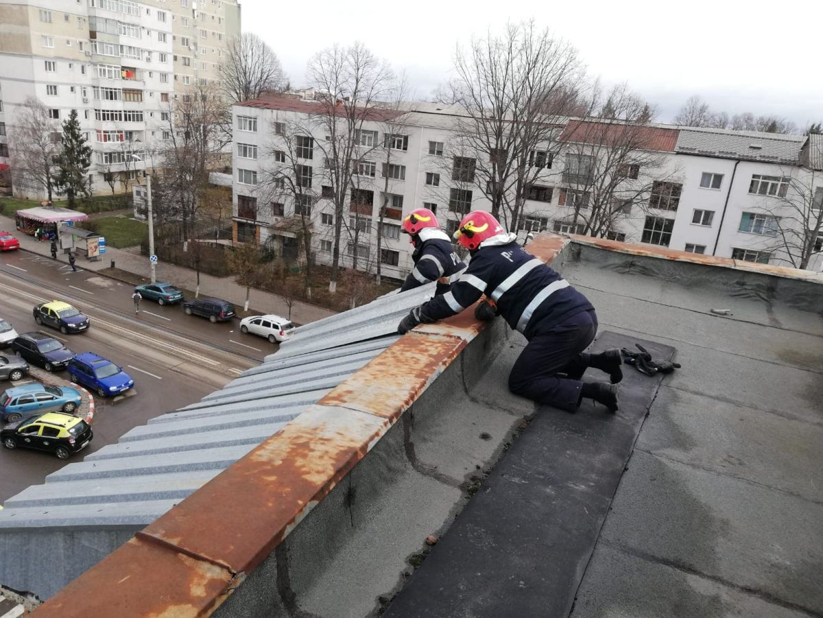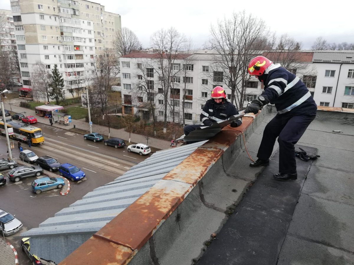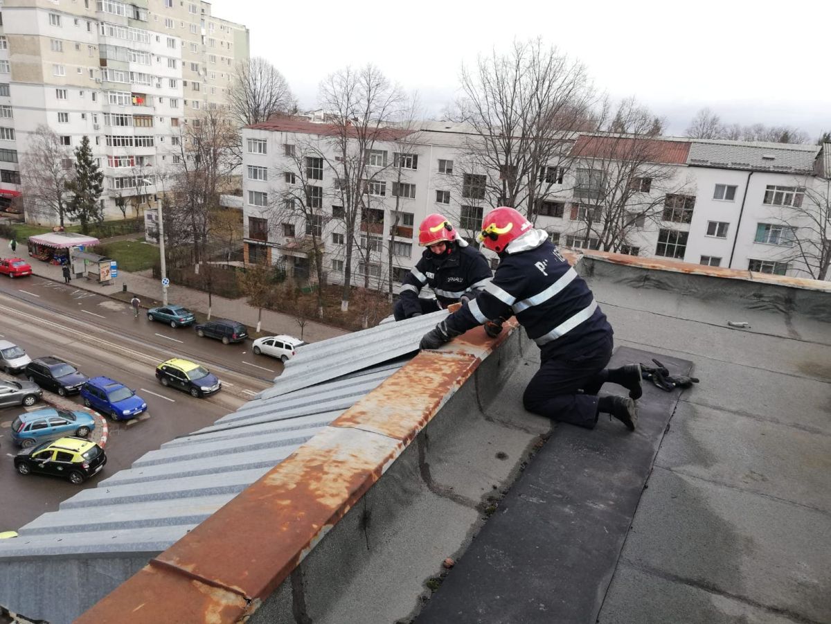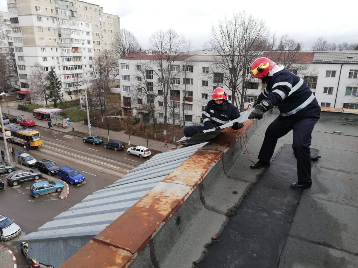 De asemenea, Garda de Intervenție Botoșani a fost solicitată pentru degajarea elementelor desprinse dintr-un acoperiș la o clădire situată pe strada Împărat Traian, în municipiul Botoșani.