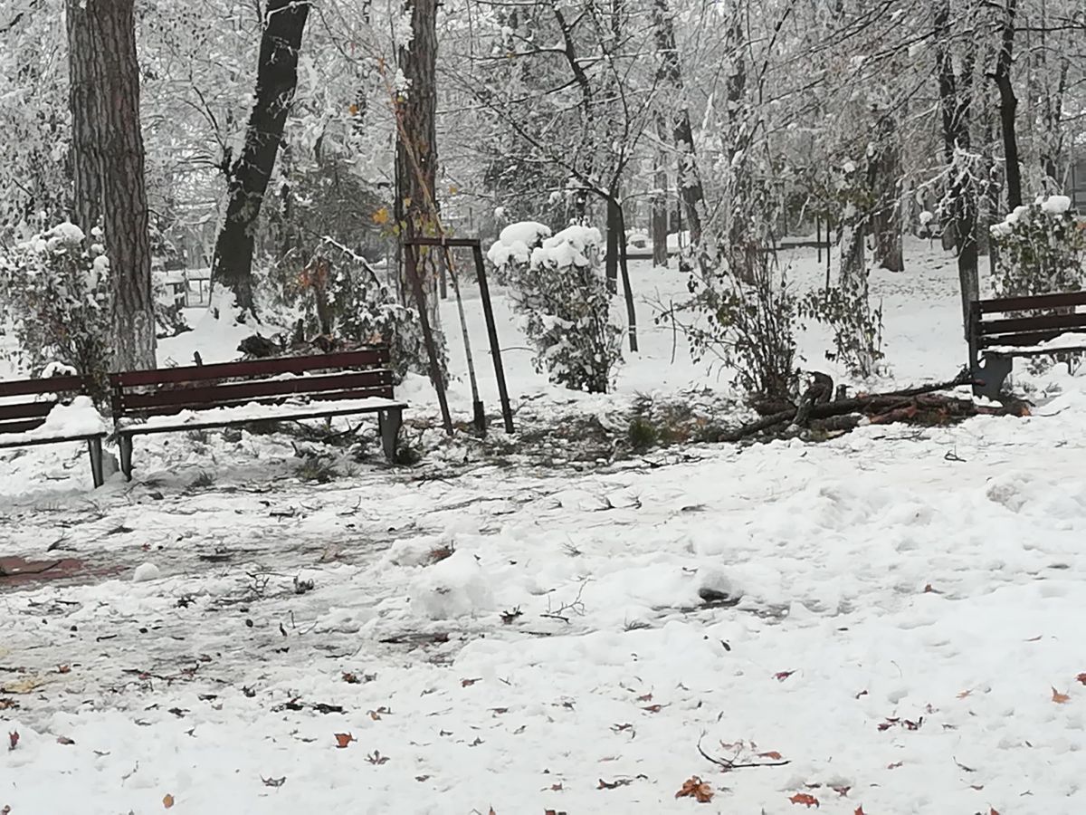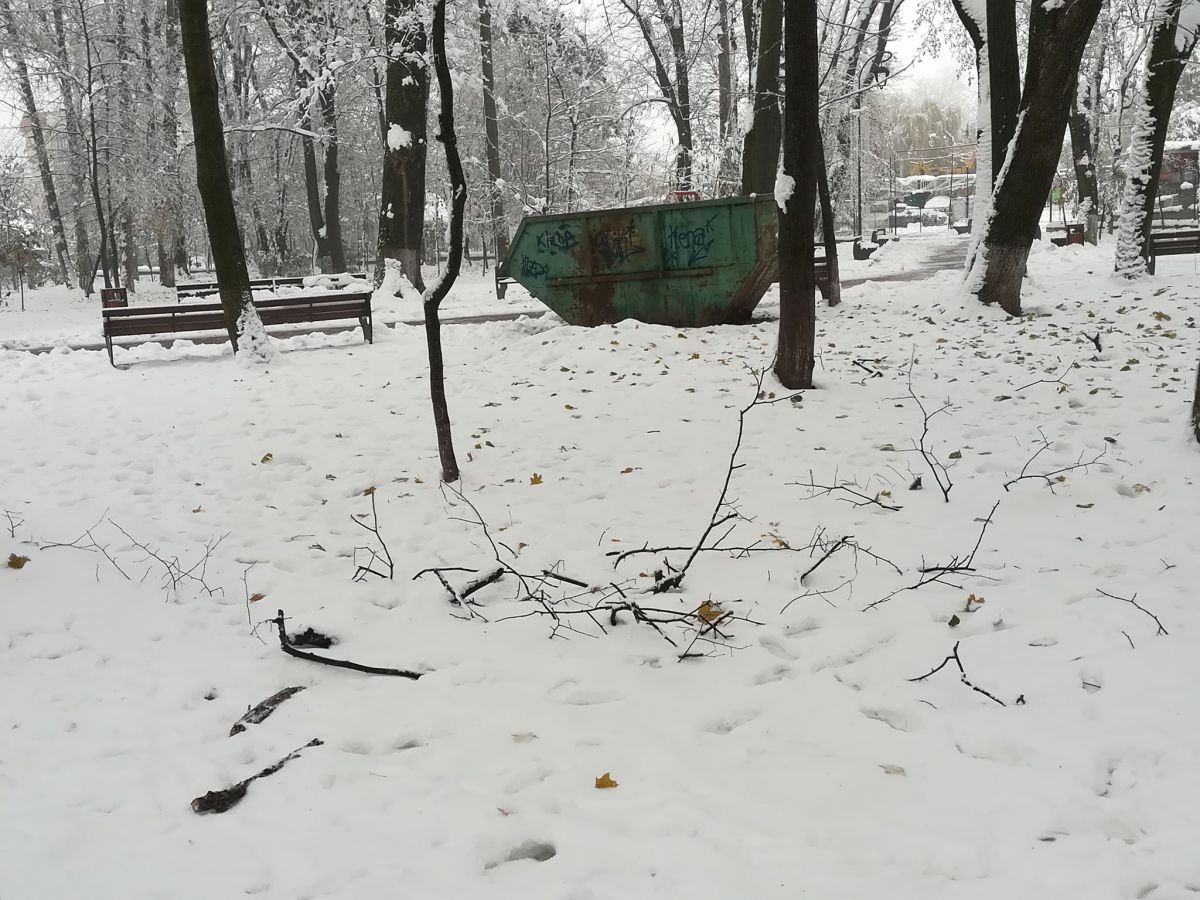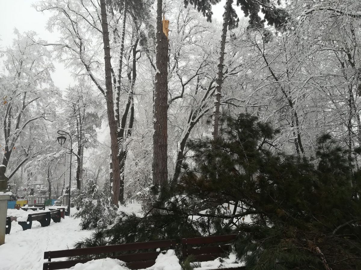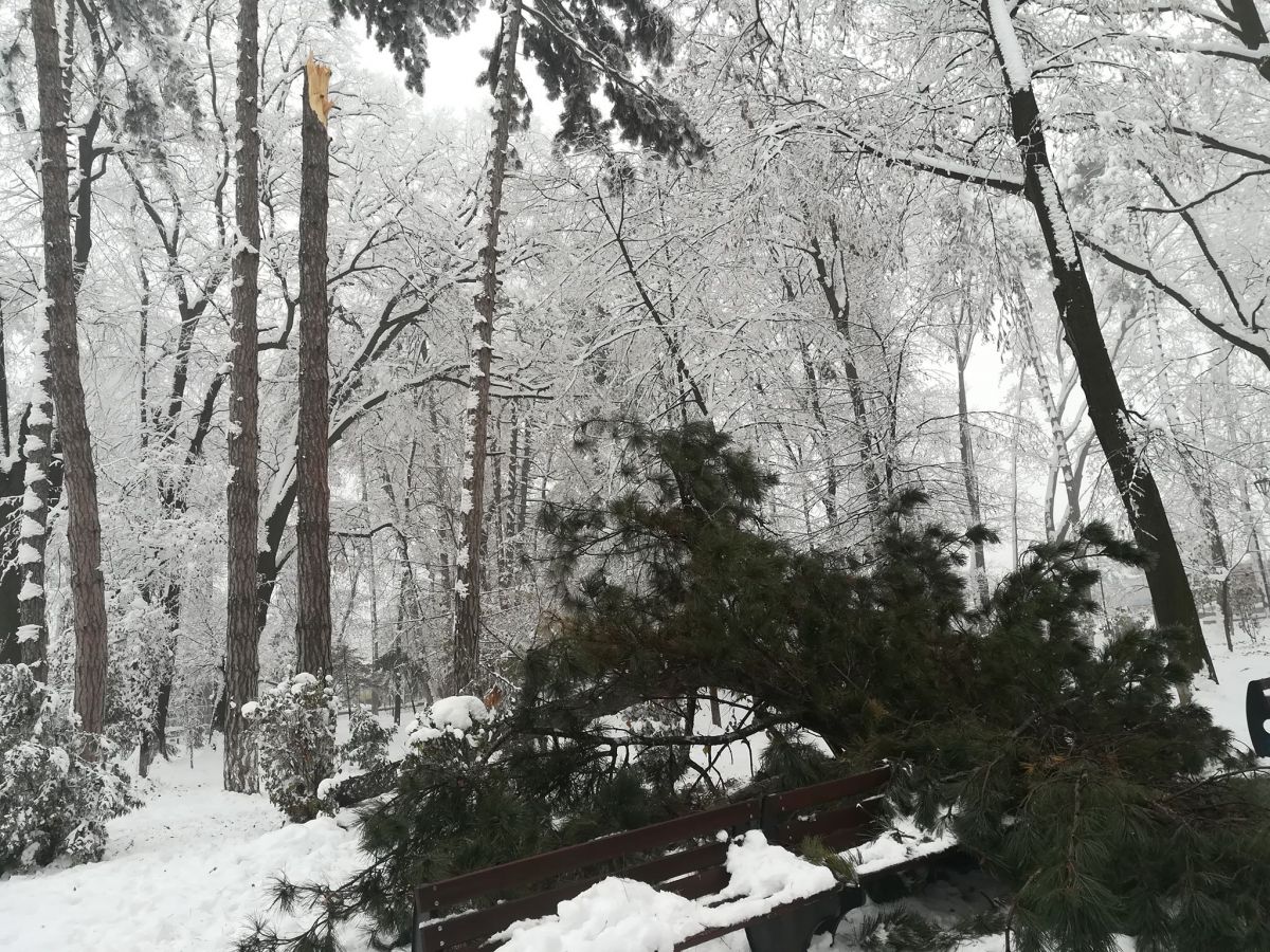 Spre exemplu din cauza zăpezii unii copaci din Parcul „Mihai Eminescu” au cedat.