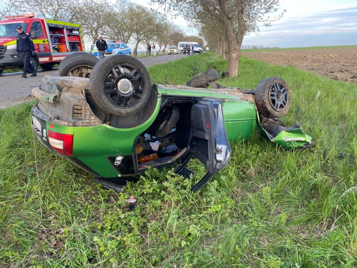Aceștia au găsit autoturismul răsturnat pe cupolă, iar în interior, pe bancheta din spate, era o femeie. Soțul și fiul acesteia, aflați în mașină în momentul producerii accidentului, au ieșit singuri din autoturism.