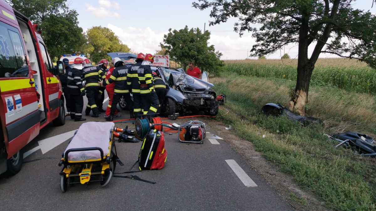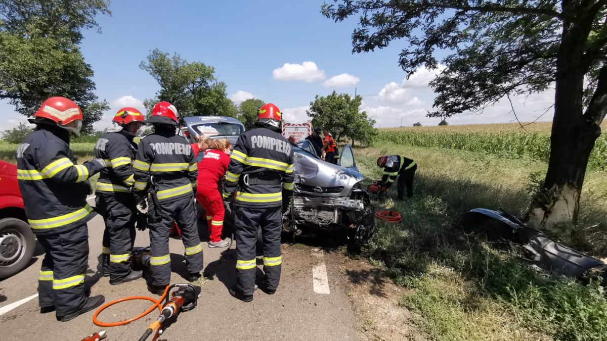 Autoturismul în care se aflau s-a izbit violent de un copac de pe marginea drumului, iar în urma impactului femeia, pasageră pe scaunul din dreapta șoferului a rămas încarcerată.
