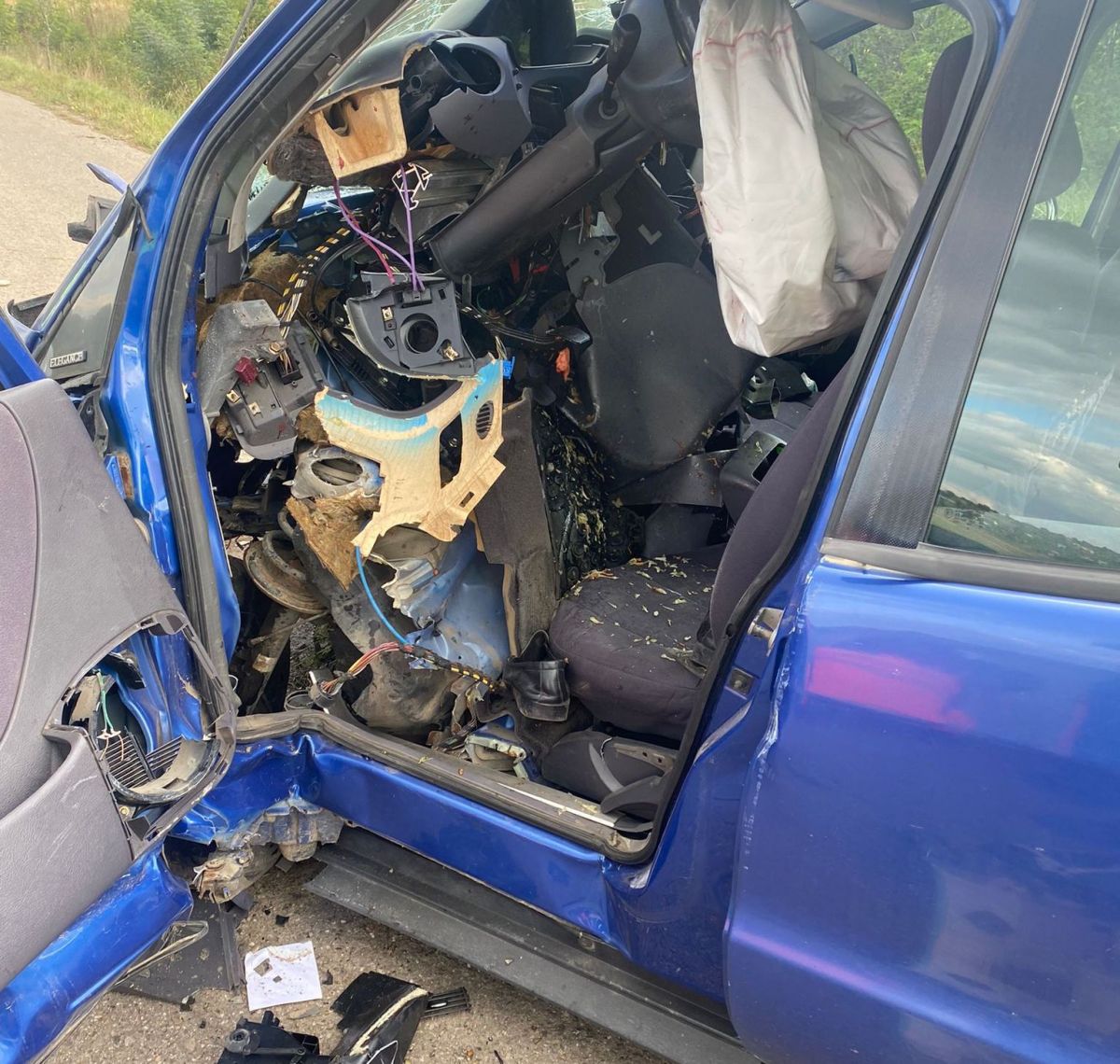 Șoferul în vârstă de 40 de ani se afla singur în mașină în momentul impactului. Acesta a fost aruncat 40 de metri.