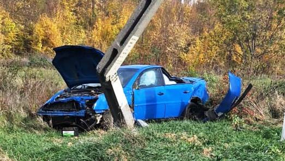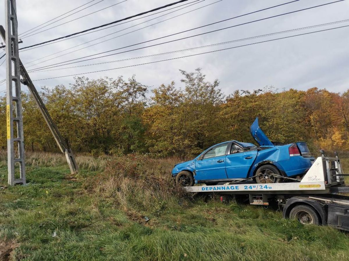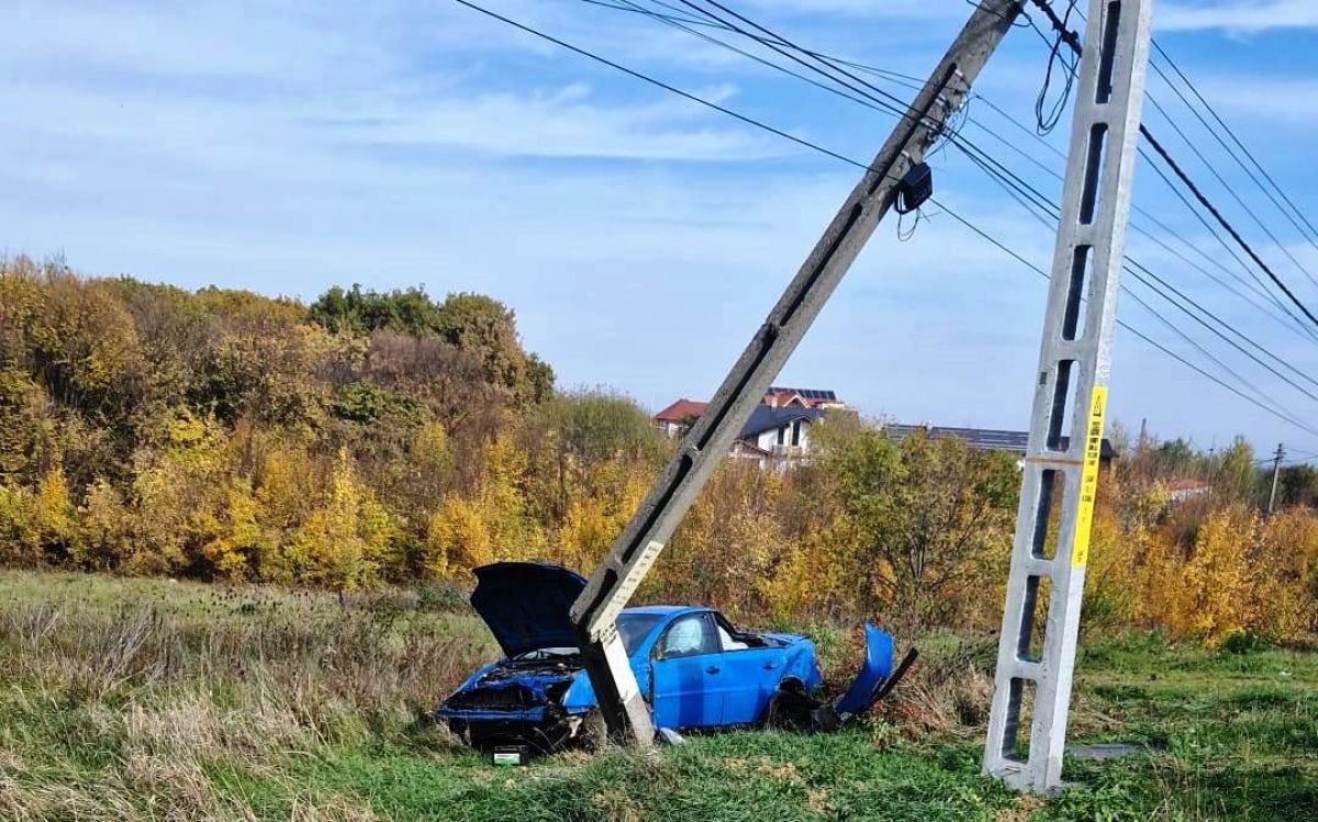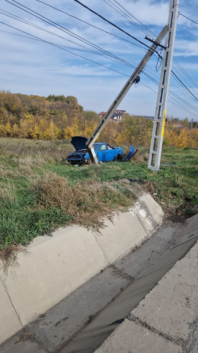 Opelul Vectra a părăsit șoseaua, s-a răsturnat și a rupt doi stâlpi.