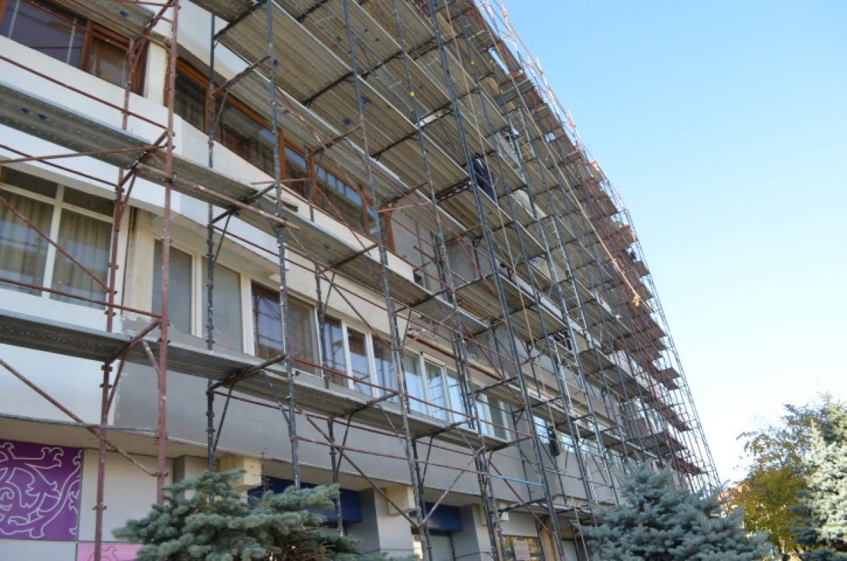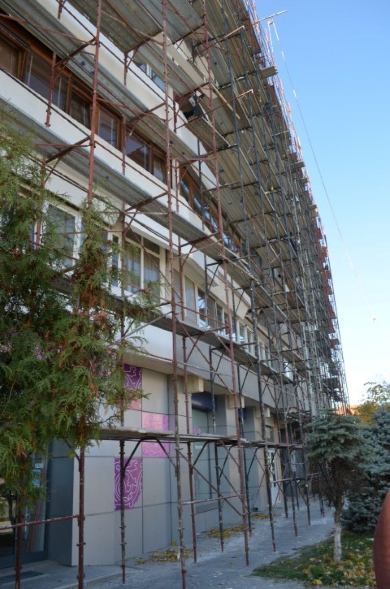 Anveloparea termică pe fonduri europene la blocul de pe strada Cuza Vodă a fost parcursă într-un ritm accelerat de lucrări. Parte din acest imobil este însă și fostul sediu al Gărzii Financiare a cărui fațadă însă, rămâne cum era și înainte.