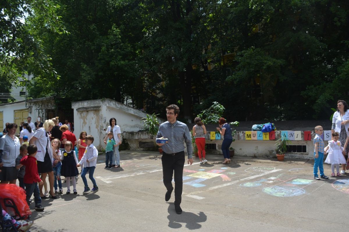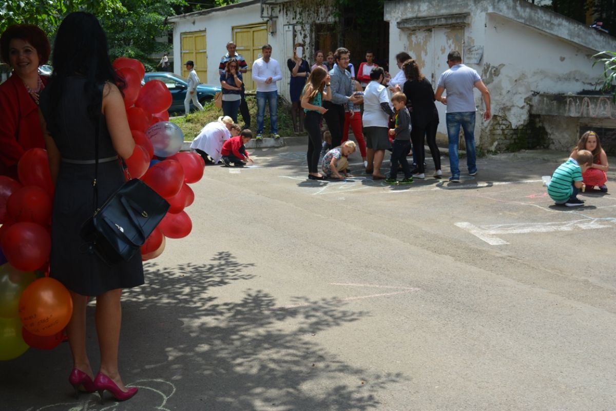 Totul în cadrul unei acţiuni intitulate „O lume minunată pentru copii” care a inclus şi organizarea unor competiţii de alergat şi de desene pe asfalt.