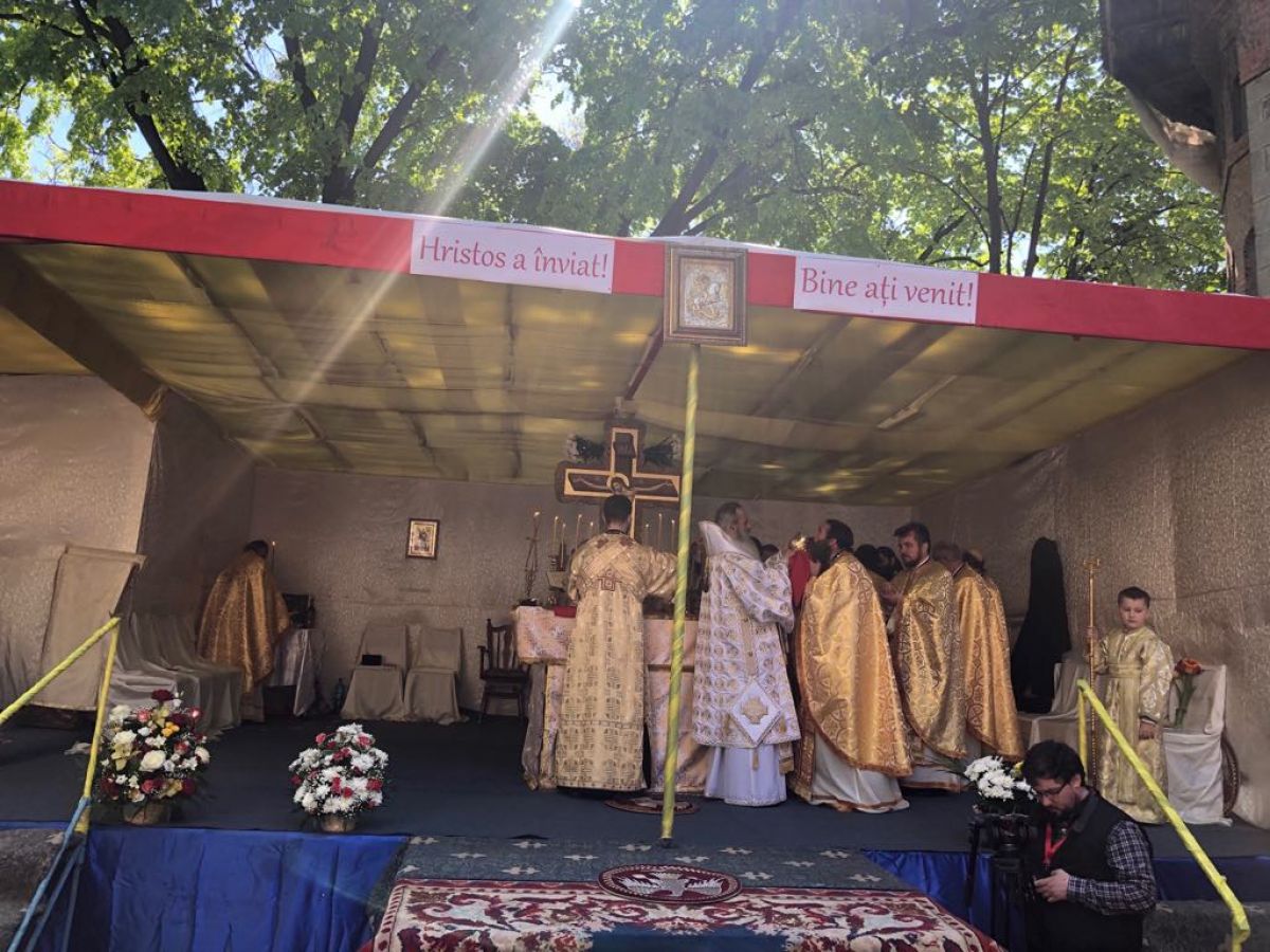 Curtea bisericii Sfântul Gheorghe din municipiu s-a dovedit astăzi neîncăpătoare, când peste 1.000 de botoșăneni au ales să fie părtași la slujba oficiată astăzi, 29 aprilie 2019. Copii cu părinți și bunici, dar și tineri au cântat împreună ”Hristos a înviat!”.