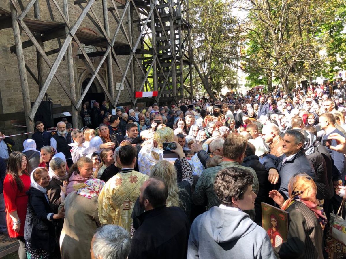 A fost o slujbă specială, căci a fost invitat să oficieze Sfânta Litughie IPS Teofan Mitropolitul Moldovei și Bucovinei. Alături de un sobor de preoți și diaconi, oamenii s-au rugat timp de trei ore.