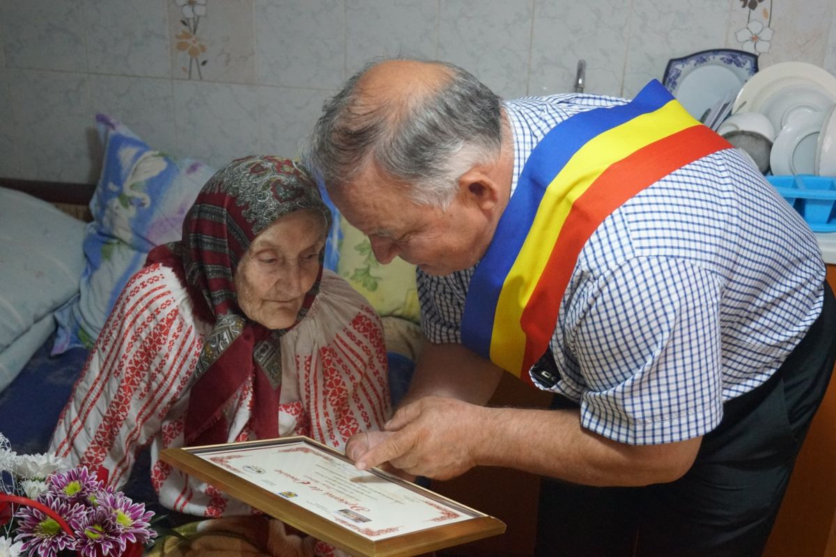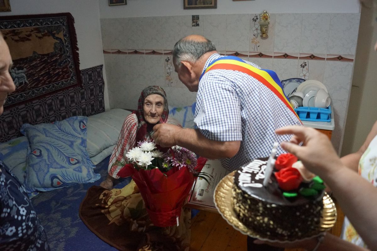 Bunica s-a bucurat de aprecierea primarului comunității, care a mers să îi ureze La mulți ani.