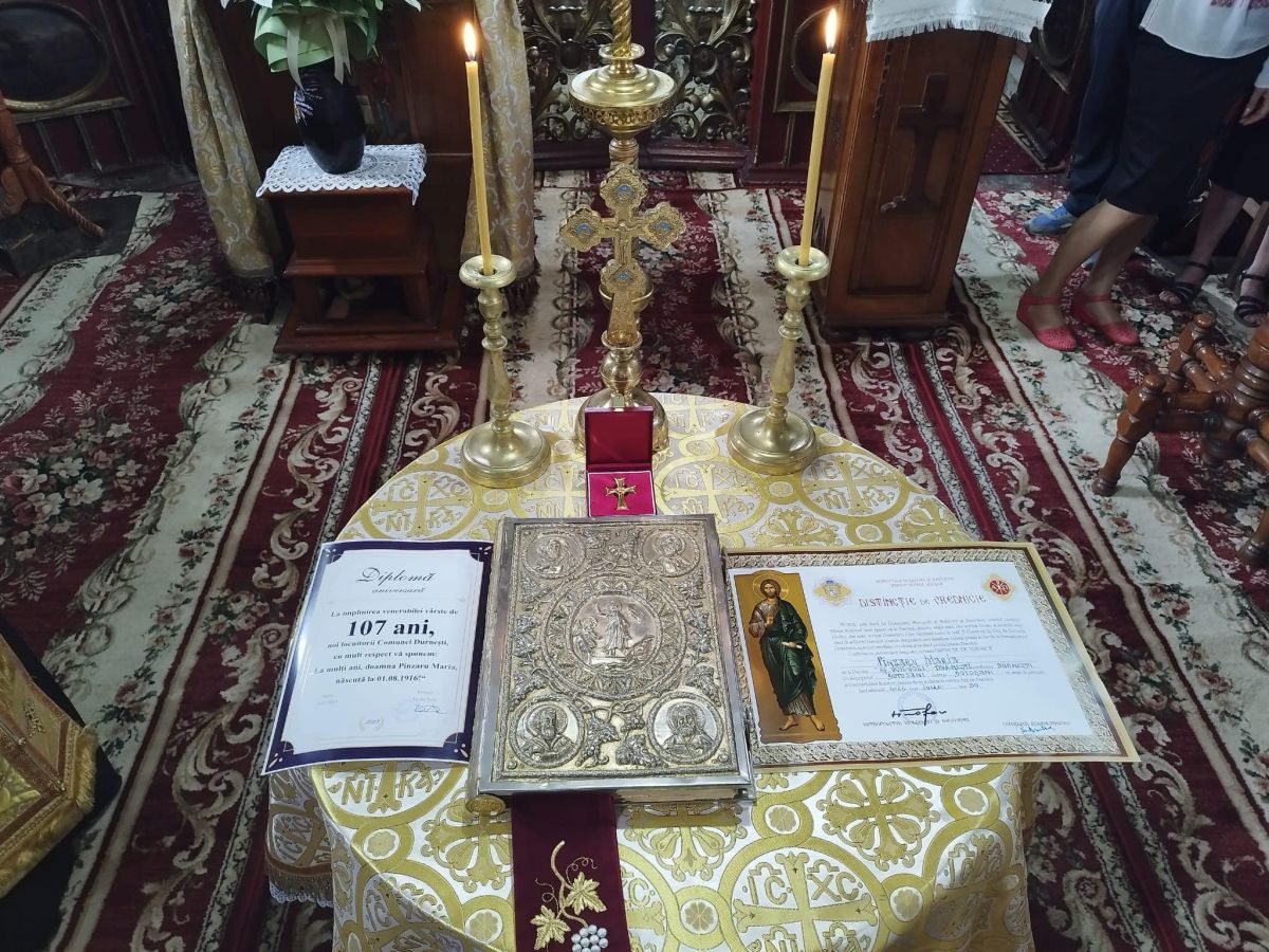 Distincția i-a fost înmânată de părintele protopop Petru Fercal.